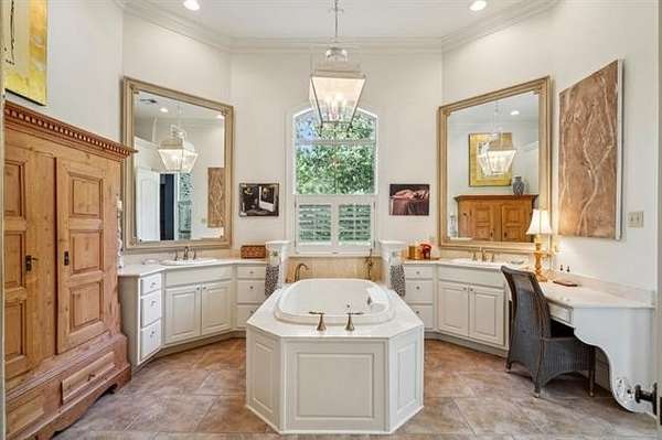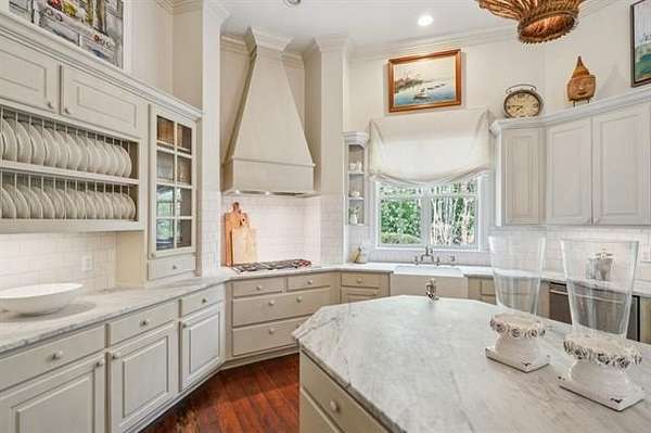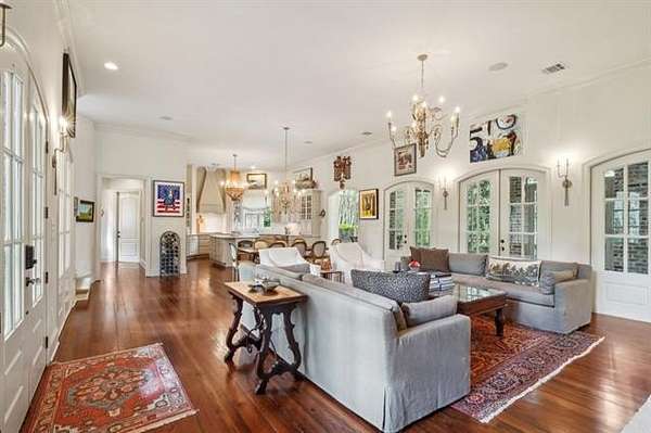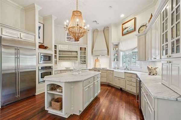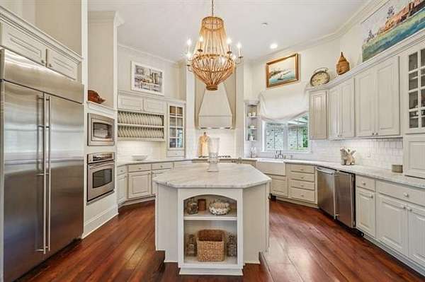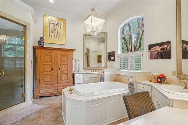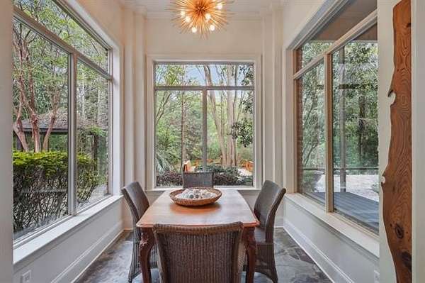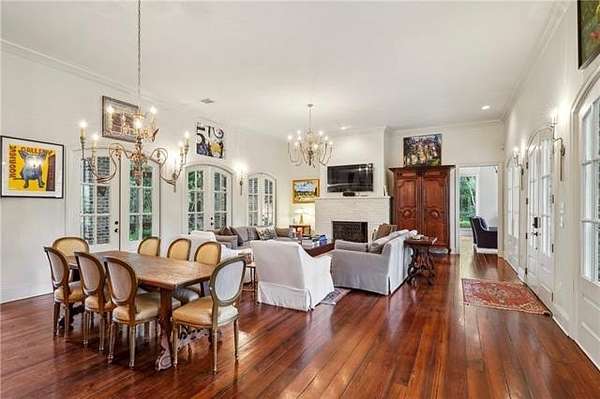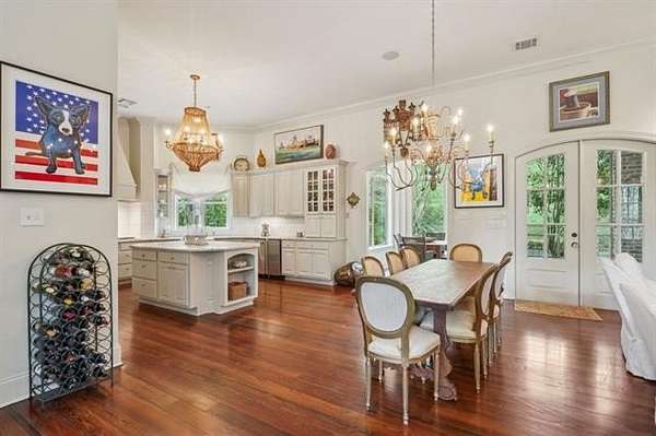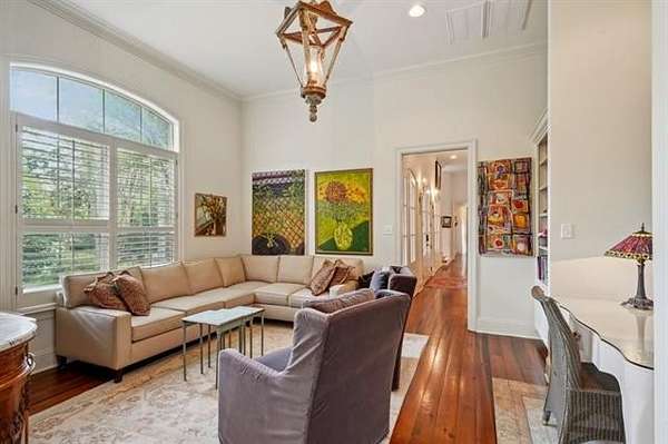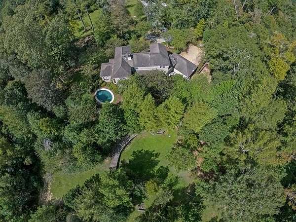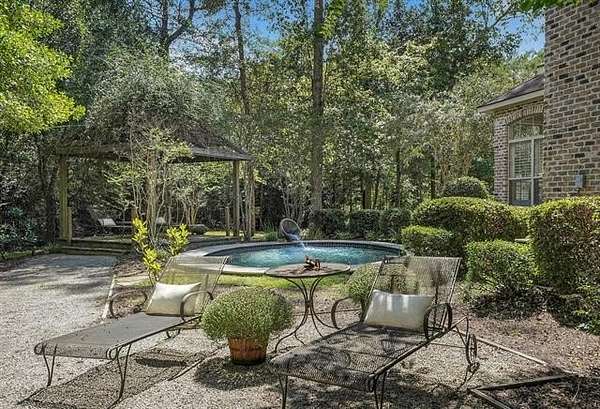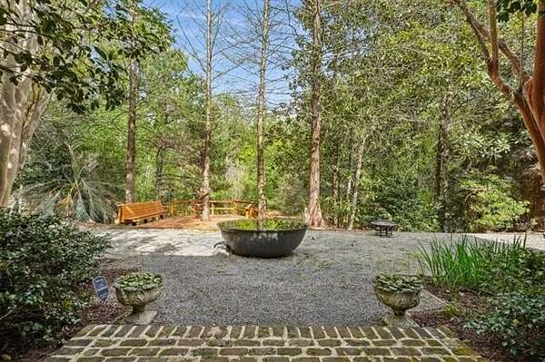 Perched on a bluff with the Little Bogue Falaya River meandering nearby is this beautiful European style home on +/-3.59 lush, private acres. Chic, professionally designed interiors with 12' ceilings, antique heart of pine floors, and custom lighting. Chef's kitchen with Wolf cooktop, farmhouse sink and marble counters opens to a spacious Living~Dining combo with French doors and a fireplace. A sunny glassed in breakfast or reading nook overlooks the grounds. A primary suite with large bath features a WOW closet! A stylish circular turret encasing the staircase leads you to a sitting room/den, four bedrooms each with a Jack and Jill bath, and a convenient computer nook. A bricked screened patio will be your go-to for morning coffee, cocktails, or to just take in the peace and serenity. An in-ground pool completes this idyllic picture. Three car garage and Green space on three sides. Beechwood Gardens has a unique and compelling history with nature trails, abundant green spaces, ponds, a sandy beach on the river, and more. Breathtaking views of gorgeous grounds with abundant flora and fauna.