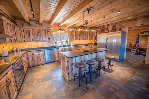 Owners motivated and will consider offers. Absolutely amazing long range mountain views over the National Forest, Mount Snow, Haystack, and Stratton ridgelines, from this beautiful 2020 Moosehead log home. This home sits on 7+ acres adjacent to thousands of acres of Green Mountain National Forest, with direct easy access to VAST snowmobile trails, as well as your own property to loop on, but still only a short drive to ski resorts, lakes, and other Vermont destinations. The home has a gorgeous open floor plan with extensive natural woodwork, ideal for your Vermont retreat. Inside is a large chefs kitchen with stainless appliances and island, wood and tile floors, a large dining area, vaulted billiard area with live edge bartop, cozy living room and play area, a large entertaining loft, 5 bedrooms, one en suite, and 2 upscale full baths, a large mudroom entry for all season gear with wood stove, covered front porch to take in the view, Tesla whole home battery backup, and the list goes on. Easy access off a paved road means you'll never have to worry about starting your vacation the right way.