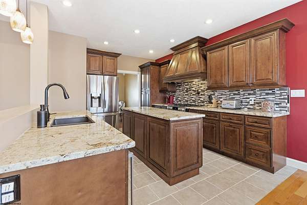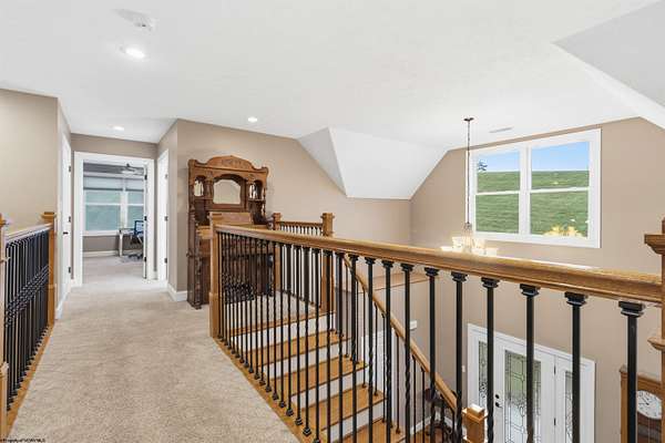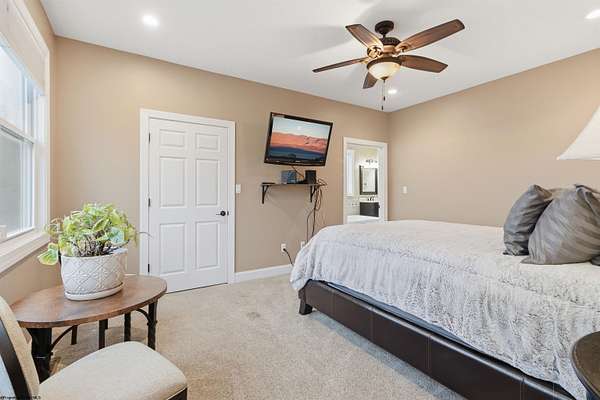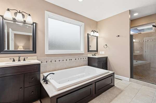 Come and enjoy the timeless elegance of this beautiful, light-filled home in Highland Ridge. This stunning property features numerous upgrades, including two primary suites. The first-floor suite offers a jacuzzi tub and separate shower for convenient single-level living. The second floor features a custom-designed, 800+ square foot sanctuary complete with a sitting area, fireplace, dressing room, built-ins, two large closets, a beverage refrigerator with space for a coffee bar, and a spacious ensuite with a double vanity and glass block shower. The home is equipped with a tankless gas hot water heater, while the primary suite includes its own electric hot water heater to ensure and endless supply. Additionally the well-lit crawl space is encapsulated, insulated, and fitted with a dehumidifier and sump pump. The laundry room is conveniently located off the kitchen, featuring new granite countertops and ample storage, and provides direct assess to the attached three-car garage.