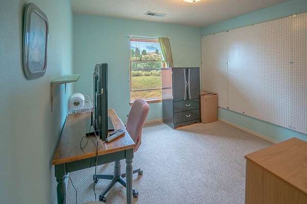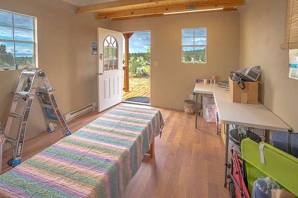 PRICE IMPROVEMENT! Discover the peace and beauty of northern New Mexico with this spacious 4-bedroom, 2-bathroom home set on 2.5 serene acres in the sought-after Camino de Las Tablas area of Tres Piedras, NM. This tranquil Mountain Retreat has the perfect blend of comfort & nature. Located at 20 Calle de Golondrina South - Forest Road 222, this charming retreat offers a harmonious balance of comfort, privacy, and natural beauty-an ideal getaway or full-time residence. Step inside to find 2,227 square feet of thoughtfully designed living space. The expansive living room is bathed in natural light from skylights and features a cozy wood-burning stove, perfect for crisp mountain evenings. A dedicated office space with fiber optic internet makes working from home a breeze. The spacious eat-in kitchen is designed for effortless cooking and entertaining, with modern appliances, ample counter space, and plenty of storage. Retreat to the primary suite, offering a walk-in closet and a luxurious en-suite bath with double sinks, modern finishes, generous vanity space, and a separate tub and shower. The additional bedrooms are well-sized and positioned on the opposite end of the home, ensuring privacy for guests or family members. Outside, this property offers endless possibilities for enjoying the great outdoors. A detached workshop with electricity and heating is perfect for hobbies, DIY projects, or a creative studio. Two additional sheds provide ample storage or a potential chicken coop, while the covered carport accommodates two vehicles and extra gear. Surrounded by majestic forested landscapes, this home is perfect for those seeking a peaceful escape with room to explore, garden, or simply unwind in nature. Located just a short drive from Carson National Forest, you'll have access to hiking, wildlife watching, and year-round outdoor adventures, while the cultural and artistic hubs of Taos, Ojo Caliente, and Abiquiu are all within reach.