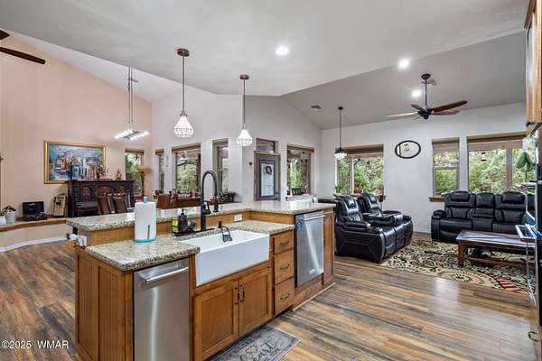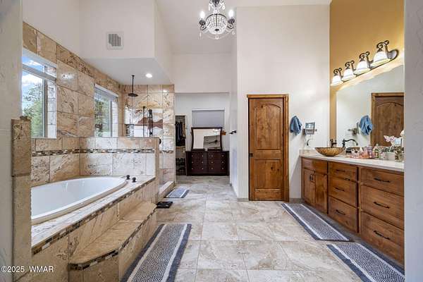 - Breakfast Bar, Central Vacuum, Double Vanity, Dressing Area, Full Bath, Living/Dining Room Combo, Master Downstairs, Soaking Tub, Split Bedroom, Tub/Shower, Vaulted Ceiling(s), Wet Bar