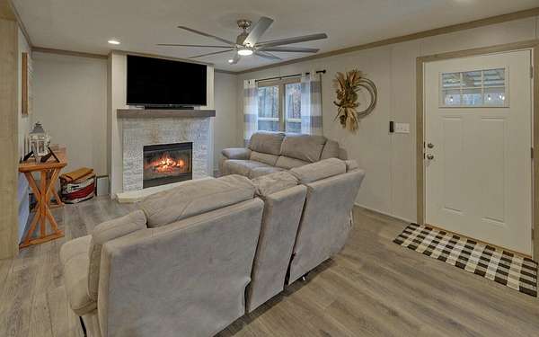 If you're looking for more freedom and less oversight, this 2022 ranch-style double wide on 2.4 unrestricted acres delivers. No HOA rules, no dues; just a well-designed, move-in ready home on a state-maintained paved road, minutes from Tri-County Community College, the hospital, and John C. Campbell Folk School. With 4 bedrooms, 2 bathrooms, and nearly 2,000 square feet, the layout offers real flexibility for families, hobbyists, or remote workers using the cable broadband connection. The open kitchen features a large island with bar seating and connects effortlessly to a dedicated dining area. Dual-sink baths, a cozy wood-burning fireplace, and a spacious laundry room with folding station add comfort and function throughout. The covered porch is ideal for unwinding, plus a detached workshop provides extra storage or creative space. With a private well providing added independence, this home offers style, substance, and freedom without compromise.