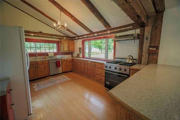 Nestled on nearly 260 acres, this exquisite 18th-century solid post & beam 4 bedroom 2 bath cape offers a harmonious blend of historic charm and modern convenience. Boasting original features like fireplaces, wood flooring, and exposed beams, the home is filled with character. Spacious rooms create a perfect setting for gatherings. Recent updates include a new roof, windows, furnace & oil tank; ensuring comfort and peace of mind. Additionally, a charming one-bedroom one bath guest cape style house (500 sq feet) with 2 car garage and additional storage bay with a private deck to backyard and pool. The property is a diverse mix of woodlots and picturesque open fields, complete with trails that meander past streams, waterfalls, and stone walls. Outbuildings enhance the property's functionality, including a barn with silo, chicken coop, generator garage, and a newer 40x60 Morton metal building ideal for equipment and storage. With frontage on three roads, this property is perfect for a private compound. Passed down through three generations, this peaceful retreat presents a rare opportunity to own a truly unique piece of history. Wardsboro's town center is in close proximity, ensuring convenient shopping experiences. It is conveniently located just minutes away from Mount Snow and Stratton ski resorts, this home allows for quick access to recreational activities.