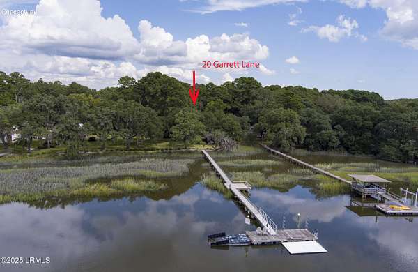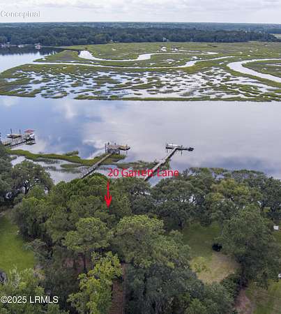 This rare .61-acre deepwater lot features a private dock and 30' x 10' floater, framed by a centuries-old live oak and other majestic oaks along a protective seawall. Enjoy world-class sunsets over McCalley Creek, abundant birdlife from bald eagles to painted buntings, and the chance to catch redfish, trout, flounder, shrimp, and crabs right from your floater. The dock also features a swim ladder and a low profile 12' x 8' floater, excellent for launching kayaks, stand-up paddle boards, rowing shells and canoes. A septic is in place. The property currently includes an adjacent 1.32-acre interior parcel with garage that will be separated and offered at $110K, with the purchaser of 20 Garrett Lane having a First Right of Refusal. This parcel is also part of a pristine 6.3-acre estate (See Parent MLS Listing #192857) composed of 7 lots, more than 850' of waterfront (including deep water), two homes, two docks, and a garage. The Seabrook area is a welcoming community just 10 minutes from Beaufort via Hwy 21. Seabrook offers Lowcountry Produce restaurant, Lobeco Library, a fishing pier, seafood markets, farm and garden supply, sawmills, boat services, K-12 schools, and more within minutes. Beaufort County has plans for a pathway to be constructed along Stuart Point Road from Hwy 21 to the end of the road. Come see why this property is truly one of Beaufort's rare treasures. Whether you're seeking a private retreat, a legacy homesite, or the centerpiece of a larger estate, 20 Garrett Lane delivers unmatched natural beauty, privacy, and potential.