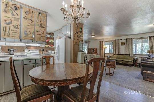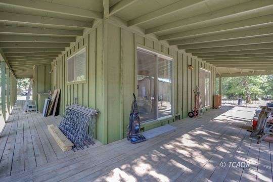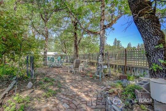 This spacious home gives you everything you need to enjoy the country life in Trinity County! The large living room gives plenty of room to gather for conversation, playing games and taking in the surrounding views from the large windows. The kitchen and dining room blend together and have plenty of storage. The primary bedroom has it's own bathroom and both bedrooms have sliding glass doors that lead to the covered deck that wraps around three sides of the home. The attached garage has a bonus room inside that could be additional sleeping quarters or a craft room. Outside has a peaceful fenced yard with shade trees, flowers and a fountain. The workshop is the perfect place for your projects or for parking your toys as there is a garage door. Multiple outbuildings can be used for storage, garden sheds or animal shelters. This 4+ acre parcel is mostly usable and would give plenty of room for your animals, additional gardens, RV parking and places for the kids to play. There is well water, city water, city sewer, city power and multiple choices for internet service. This is the perfect place for you to get out of the city and enjoy your country home.