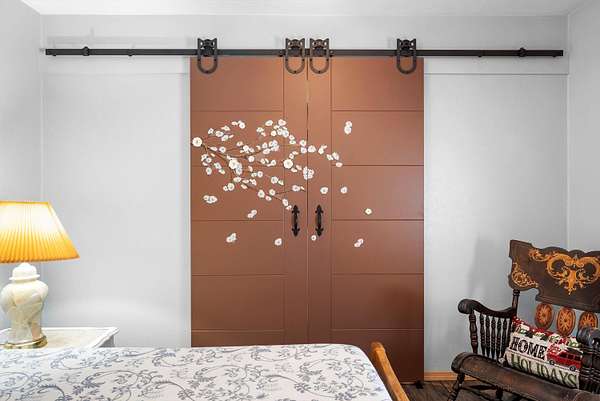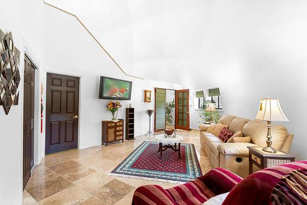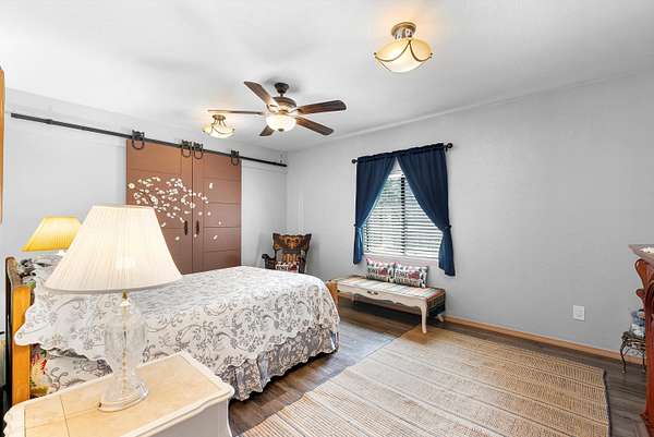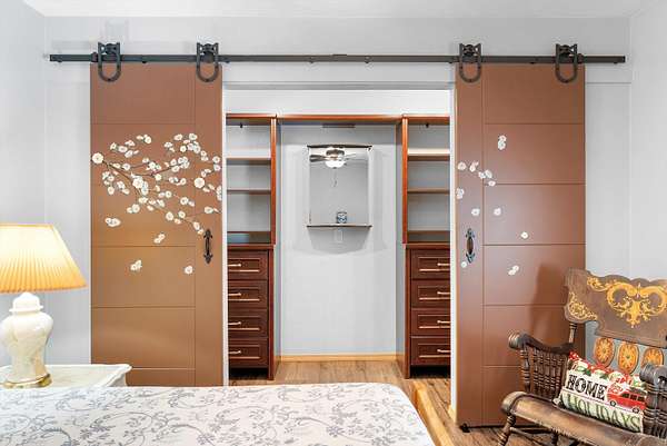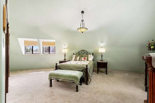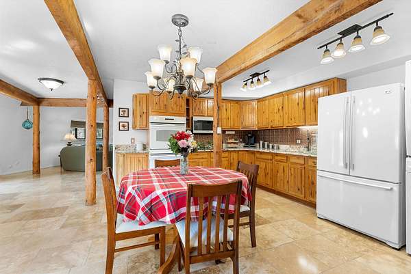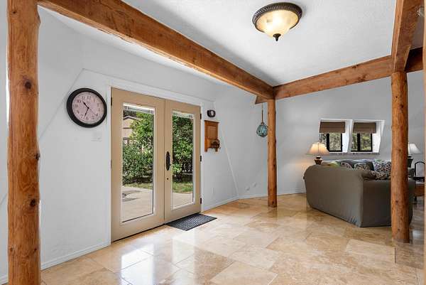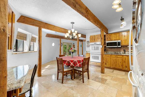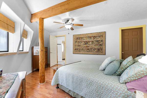 - Beamed Ceilings, Ceiling Fans, Main Level Primary, Skylights