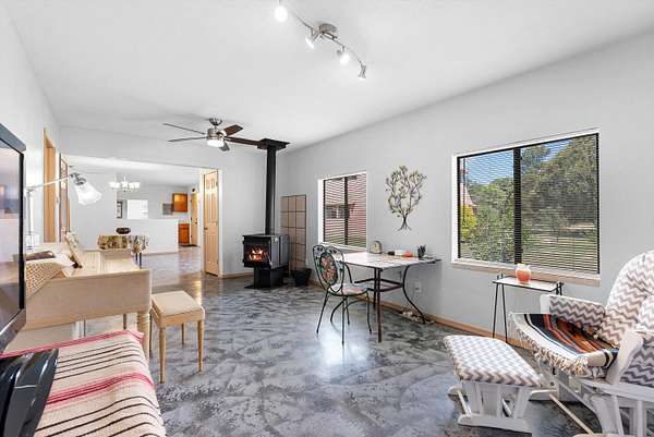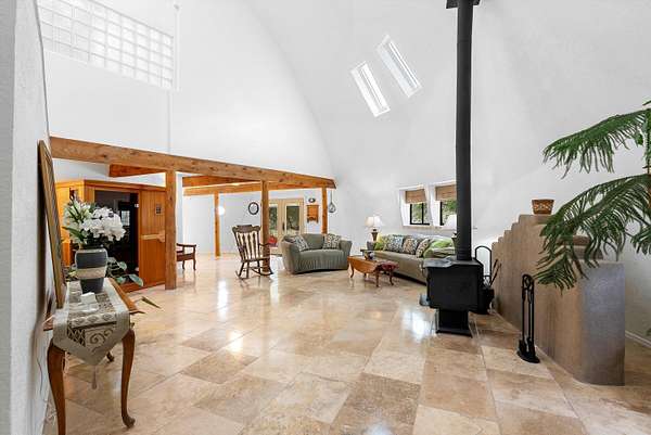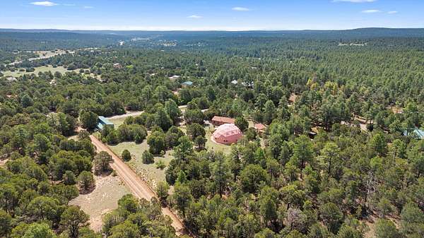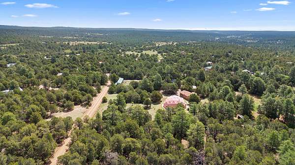 UNLIKE ANYTHING ELSE IN THE EAST MOUNTAINS, THIS EXPANSIVE TIJERAS HORSE PROPERTY IS A WORLD OF ITS OWN. Tucked into over four wooded and meadowed acres, it offers a rare blend of space, privacy, and versatility with three distinct residences. The 2-story dome house features exposed beams, tile floors, two fireplaces, and a charming country kitchen. Imagine sitting out on the open patio with 360 degrees of nature. The cozy casita is a perfect studio or guest house, while the spacious cottage--with its open layout, concrete floors, wood stove, and walk-in closet--adds even more flexibility for multi-generational living. A pole barn, detached garage, workshop, plenty of room of animals and toys. Furniture and tools convey--bring your vision and make this one your perfect mountain retreat!