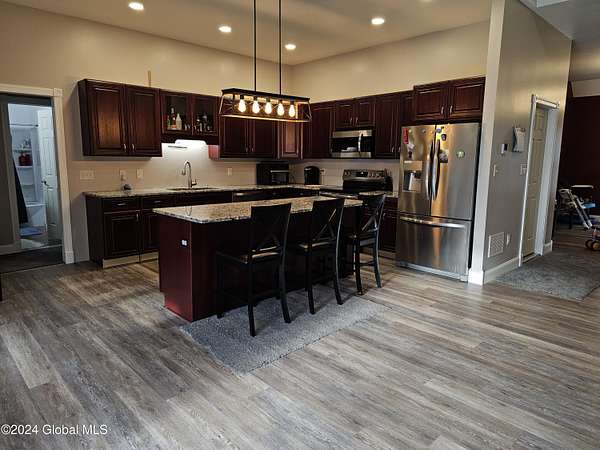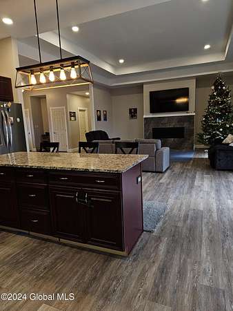 HUGE Ranch style home with a full finished MASSIVE In Law Apartment in the basement. Floor 1 offers 2,836 sq ft with 3 bedrooms, 1 bonus room over the garage, 2.5 baths, beautiful open floor plan and Master Suite with his and Hers closets and Bathroom sinks, views out the windows and walkout access to rear deck. Finished basement offers an In law apartment with 2,530 sq ft, 2 bedrooms and 2 Baths with walkout access for a separate driveway access. Lots of parking, 2 attached garage with circular driveway, situated on 4.78 acres and located in Mechanicville CSD across the street from the Golf Course! MUST SEE!! Lot has possibility of subdivision for 2nd home with utilities already there