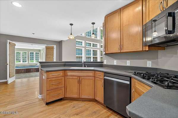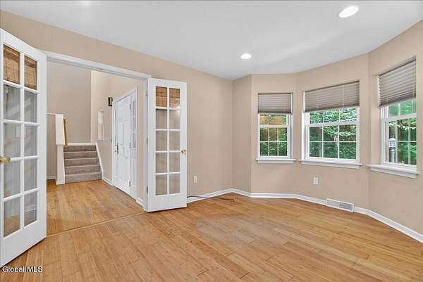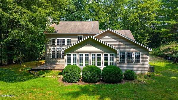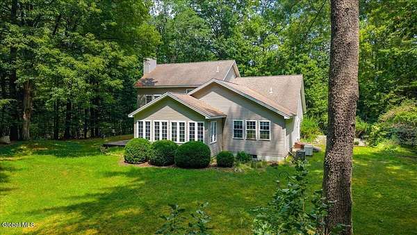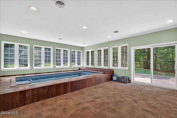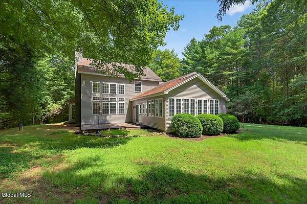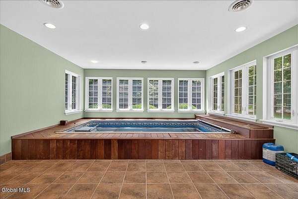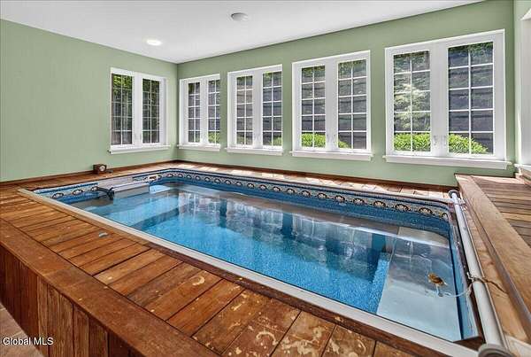 Nestled on 14 private acres including a 2nd buildable lot! This contemporary home offers serene living just minutes from Saratoga Springs. This 3-bedroom, 2.5-bath home features a first-floor primary suite and first-floor laundry for easy living. A vaulted ceiling great room fills with natural light, while an indoor continuous lap pool provides year-round wellness in the massive sunroom. Enjoy peaceful seclusion and modern comfort in this unique retreat.
