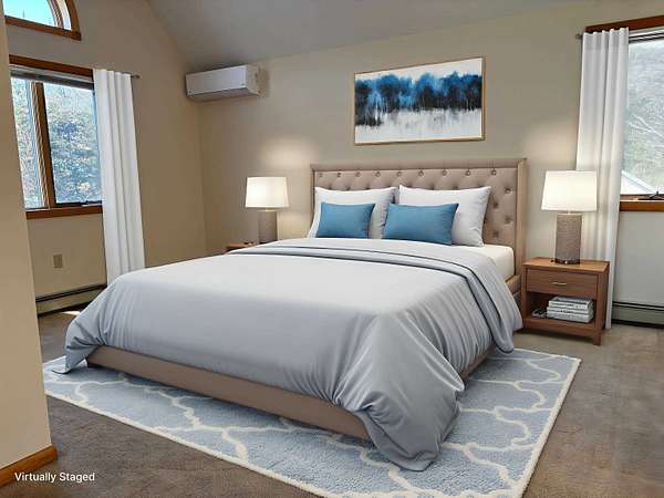 WONDERFUL CONTEMPORARY HOME in very desirable Page Hill subdivision. Nicely designed with a great layout for entertaining and comfort. ALL FRESHLY PAINTED THROUGHOUT! The bright and welcoming foyer opens up to the spacious living room with brick fireplace (with propane insert) and cathedral ceilings. A wall of glass opens to the views of the backyard with seasonal views to the mountains beyond. Selective clearing could open views year-round with plenty of privacy. There is a bedroom and full bath on the main level, allowing for one-floor living or convenient home-office. Enjoy the huge Trex deck off the living area with a custom-powered awning cooling off the deck in the summer. Mini splits are installed in the living room and the primary suite. Ascend the open stairs to the second level. Primary suite with updated bath is on the right where you will find a huge walk-in closet. Take a left across the bridge balcony to two additional bedroom and a full bath. The lower level provides a finished family room with direct access to the backyard. Laundry/ craft room plus a huge workshop for all of your hobbies and crafts. There is also a half bath on this level. The yard is nicely landscaped and well maintained. Recent updates include all interior freshly painted (2025), a new roof in 2022 and all exterior painted in 2024. Easy access to route 49 in Campton. Near all of the major ski areas as well as Owls Nest golf and all recreation opportunities north and south. Come take a look at this quality home in Page Hill.
