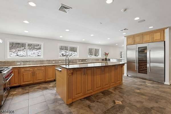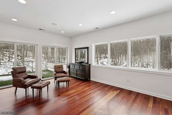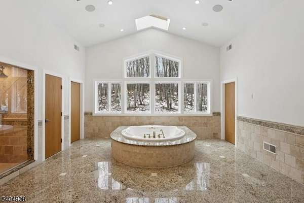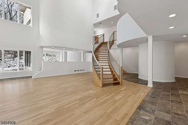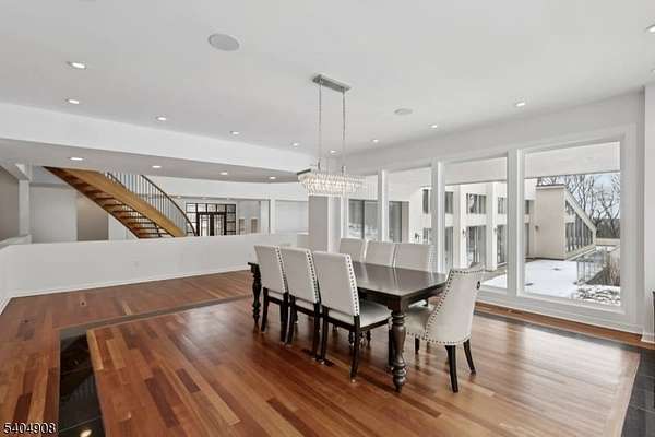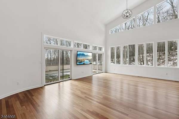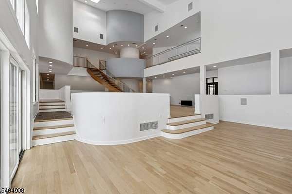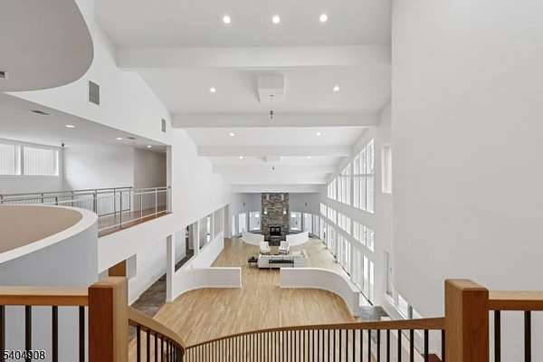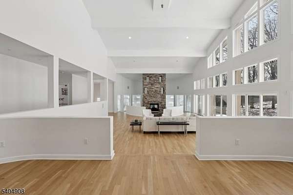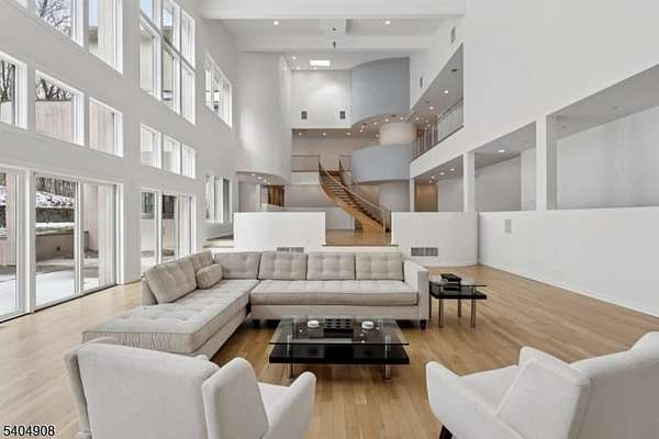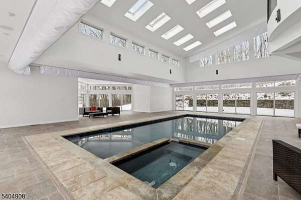 A rare architectural statement where scale, sophistication, and elevated luxury converge. Set on 3.7 private acres, the residence spans approximately 13,000 sq ft with 7 bdrms, 7 full baths and 2 half baths, designed for both grand entertaining and refined everyday living. From arrival, striking architectural lines, dramatic volume, and curated sightlines create a 'WOW' factor. The grand living room unfolds as a stunning open-concept space with soaring 32-ft ceilings, a sculptural spiral staircase, and a 2-sided 16-ft gas fireplace. Floor-to-ceiling windows flood the home with natural light, while views extend to the sun-drenched, heated indoor pool. The chef's kitchen pairs performance with modern design, featuring Wolf and Sub-Zero appliances, multiple ovens, wine refrigeration, coffee system, and premium finishes throughout. The main level also offers a private theater, gym, office, and first-floor au pair ensuite. The second level is anchored by a luxurious primary suite sanctuary with 20-ft ceilings, dual balconies, loft, sitting room, dual walk-in closets, and a spa-inspired bath with separate water closets and bidet. 4 addt'l bdrms include 3 ensuites and private balcony access.The lower level showcases the indoor pool, a 1,200-sq ft ballroom, dry sauna, full bath, and flexible space ideal for a wine room, cigar lounge, or recreation area. Additional highlights include a 4 car heated garage and dedicated elevator shaft. A truly one-of-a-kind Mendham estate!
