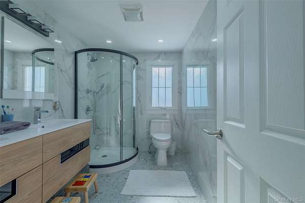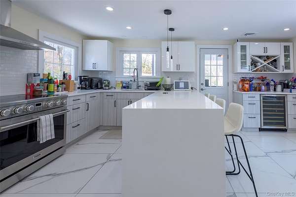 This magnificent 6-bedroom, 5.5-bathroom residence is perfectly situated on over two acres in a prime Kings Point location. Enter through a long, winding, gated, forested driveway that leads you up to the home perched at the top of a hill, where privacy and serenity abound and sweeping views of the Long Island Sound create a breathtaking backdrop to everyday living. This home seamlessly blends grand architectural details with the warmth of a modern sanctuary, offering an exceptional setting for both refined entertaining and peaceful retreat. The Formal Dining Room is ideal for holiday gatherings and elegant hosting, while the Chef's Kitchen is designed for both high-end culinary creation and relaxed morning coffee. Premium finishes include stunning quartz/quartzite countertops paired with professional-grade appliances. Enjoy the ultimate convenience and comfort with a sprawling primary suite on the main level. Five additional bedrooms and four-and-a-half more bathrooms provide abundant space for guests, or dedicated home office living. Set on a rare 2+ acre lot, this property offers expansive green space, natural seclusion, and captivating water vistas-an unmatched combination of tranquility and accessibility.