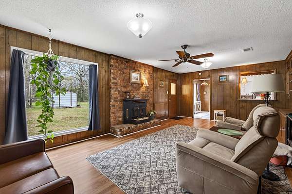 Country living at its best! This spacious 4 bedroom, 2.5 bath home offers approx 2621 sq ft and sits on a level 4 acre tract complete with a 21x34 shop - perfect for hobbies, storage or workspace. Inside, you'll find a comfortable & versatile floor plan with extensive & thoughtful updates throughout (upgraded windows, doors, flooring, interior and exterior paint, more). The home features 3 separate living areas, including a cozy space with a wood burning fireplace, built-in bookcases and plenty of character. The additional living areas are generously sized, making them ideal for entertaining or flexible use. The kitchen provides abundant cabinet storage and prep space, along with a formal dining room perfect for gatherings. All bedrooms are conveniently located down the hall and offer ample space and comfort. Step outside to enjoy the peaceful setting, complete with a covered carport, multiple storage buildings, several raised garden beds and patio area - perfect for relaxing and takin in the surrounding countryside.