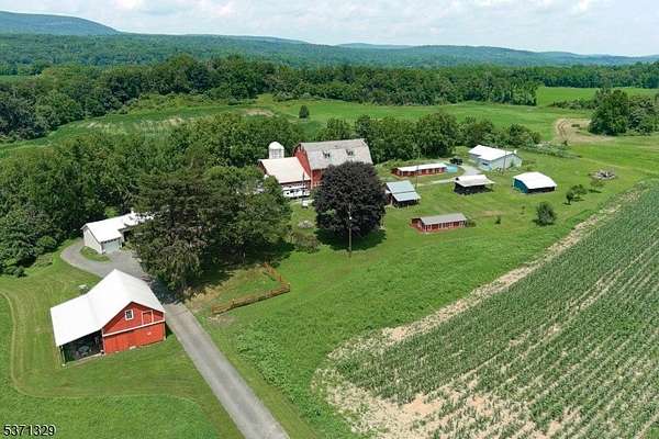 This remarkable 116-acre pastoral FARM includes 2 homes and many out buildings. With over 4,000 feet of scenic water frontage along the Paulinskill River-renowned as one of New Jersey's premier trout fishing destinations- and a picturesque 0.36-acre pond, perfect for fishing, wildlife observation, or relaxing by the water's edge. Enjoy direct access to the Paulinskill Valley Trail, the 6th longest trail in New Jersey, ideal for hiking, horseback riding, and exploring nature year-round.The original 1780 farmhouse is brimming with history and rustic charm, offering 5 bedrooms and 1.5 baths. A spring-fed water source and authentic spring house add to the character. Inside, a spacious walk-up attic is ready to finish to suit your vision. A large barn with a durable slate roof provides ample room for cattle or other agricultural uses. Multiple chicken coops, an oversized Agricultural Steel building, farm equipment storage, and a separate summer kitchen complete the impressive outbuildings.Also included is a three-bedroom, one-bath Colonial home that is income-producing. The land generates additional income from a local farmer and a fishing club, providing revenue sufficient to cover yearly property taxes.This magnificent, once-in-a-lifetime property won't last long. Whether you envision a working farm, private retreat, or outdoor paradise, this special property combines natural beauty, history, and endless possibilities. Call today!