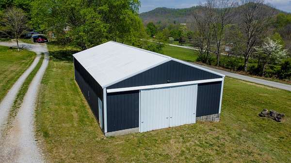 Once you have turned right onto Roller Knob Rd, turn right into the gravel driveway next to the large black building.