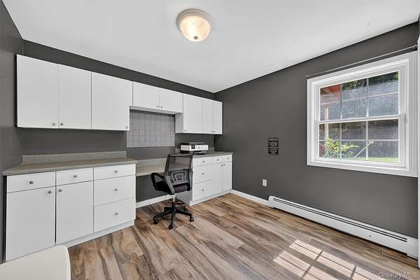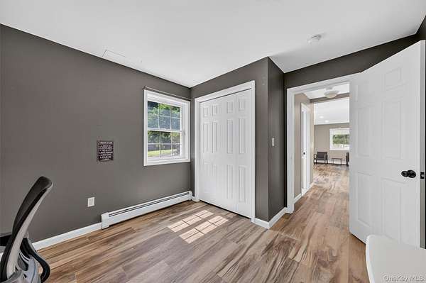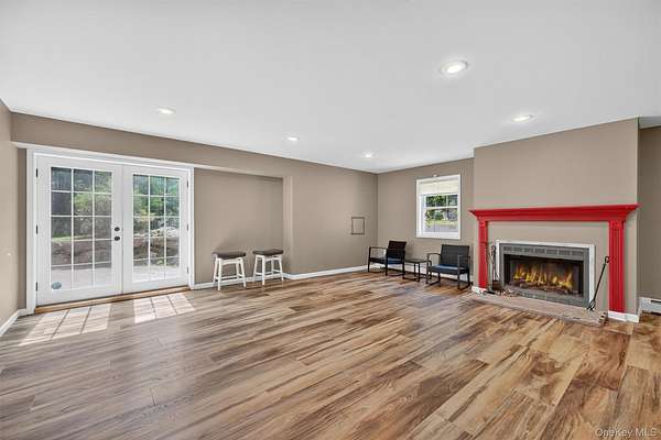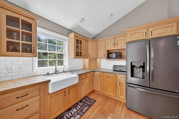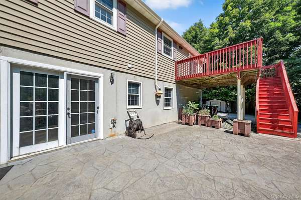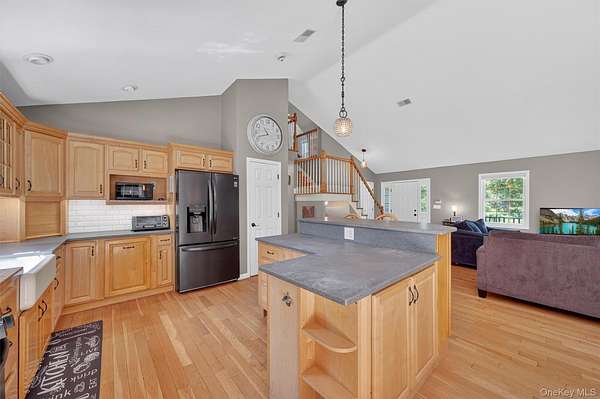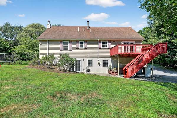 Set on 2.3 private acres in Wallkill, Orange County within the Middletown School District, this beautifully maintained 4-bedroom, 3-bath raised ranch offers nearly 3,000 square feet of flexible living space designed for comfort and connection. The open-concept main level features a kitchen with stainless steel appliances, generous counter space, and a natural flow into the dining and living areas. Hardwood floors, large windows, and thoughtful details create a bright, welcoming atmosphere. The spacious primary suite includes an updated full bath and ample closet space, while two additional bedrooms and a second full bath complete the main floor. A loft with vaulted ceilings provides a comfortable, versatile area for reading, relaxing, or working from home. The finished walk-out basement expands the living space with a large family room centered around a wood-burning fireplace. This lower level also includes a fourth bedroom, a full bath, and access to the backyard, making it ideal for guests or extended living. The design supports both privacy and togetherness, with flexible areas for different needs and lifestyles. Outdoor living is a highlight, with a spacious back deck for dining and gatherings, a cozy fire pit area, and a classic front porch. The 2.3-acre property offers a balance of open lawn and light woods, providing a sense of space and connection to nature, with room enough to keep a horse, goats, or chickens. Built in 2001 and carefully maintained, this home combines timeless Hudson Valley charm with modern convenience. Located close to shopping, dining, and major commuter routes, it offers the space, warmth, and functionality that today's buyers are seeking in a beautifully cared-for setting.