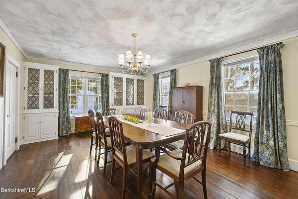 This quintessential turn of the century antique home, built in 1909, is in immaculate condition. Set just outside the charming village abutting desirable Pine Crest Hill Rd, the property provides privacy with beautiful gardens and landscaping and stunning views of pasture and mountains, 3 miles to downtown Great Barrington, in low-tax Egremont. The main residence features 4 spacious bedrooms, 3.5 baths, two cozy fireplaces, tall ceilings, and light, bright, airy spaces that create a welcoming atmosphere. A separate guest house with two bedrooms, currently in need of some TLC, adds to the versatility of the estate. The grounds span 11 gorgeous, sub-dividable acres, presenting future possibilities for a family compound. Conveniently located near Berkshires attractions.