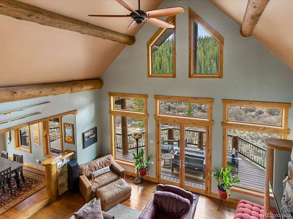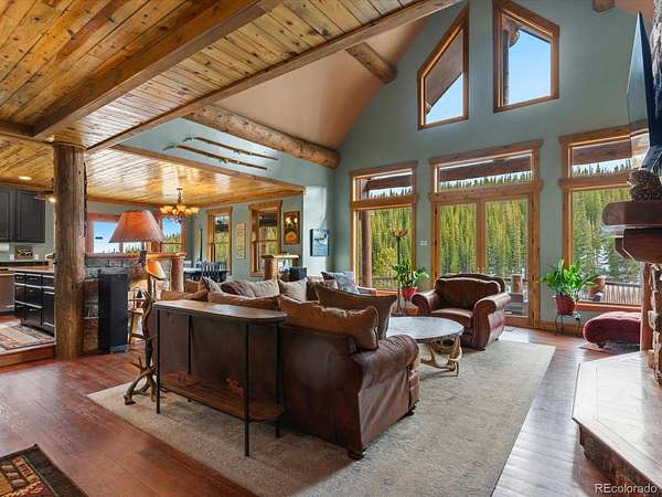 Experience the pinnacle of Rocky Mountain living at this architectural masterpiece, perfectly situated on nearly 10 private, wooded acres at a breathtaking 11,000 feet. Located in the prestigious Valley of the Sun and bordering National Forest, this estate seamlessly blends rustic log accents with modern glass and stucco. The property offers a rare sense of seclusion, featuring a pristine creek running through the backyard and unobstructed views that stretch across the Mosquito Range to Pikes Peak, often shared with resident moose wandering through the timber.
