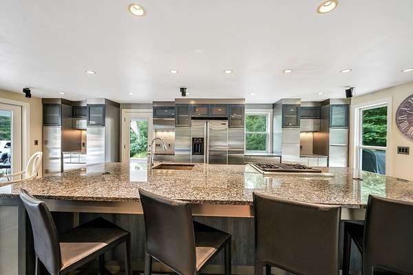 Tranquility at Its Finest! Welcome to your private oasis. Nestled on 6.1 acres, this beautifully updated 3-bed, 2-bath Cape offers a rare combination of luxury, privacy, and thoughtful design. From the moment you enter the wrap-around driveway, you'll feel the peaceful seclusion this home provides. Perfect for entertaining, the property features a heated in-ground pool, front and rear fire-pit setups, a covered deck, and a relaxing hot tub surrounded by nature. Inside, the craftsmanship shines with an open-concept floor plan, hardwood flooring throughout both levels, wood stove, and an entire wall of glass along the back of the first floor that floods the space with natural light. The chef's kitchen is a true centerpiece--complete with an oversized island and upgraded stainless steel appliances ideal for entertaining! Energy-efficient solar panels, both bathrooms have been updated, ample storage throughout, and close highway access are additional features this property offers!