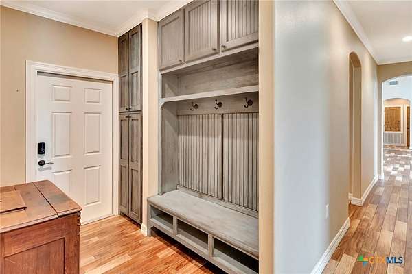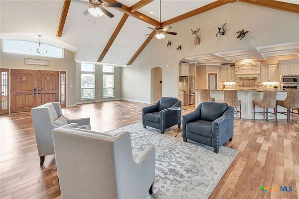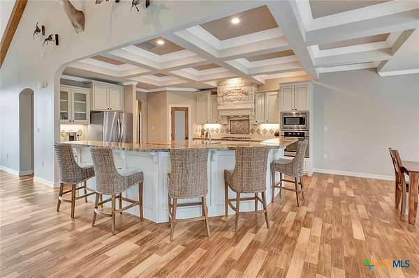 - Beamed Ceilings, Breakfast Area, Breakfast Bar, Built In Features, Ceiling Fans, Crown Molding, Custom Cabinets, Dining Area, Double Vanity, Granite Counters, High Ceilings, Home Office, Jetted Tub, Multiple Dining Areas, Open Floorplan, Pull Down Attic Stairs, Recessed Lighting, Separate Formal Dining Room, Separate Shower, Tub Shower, Walk In Closets