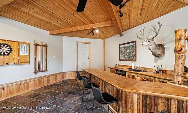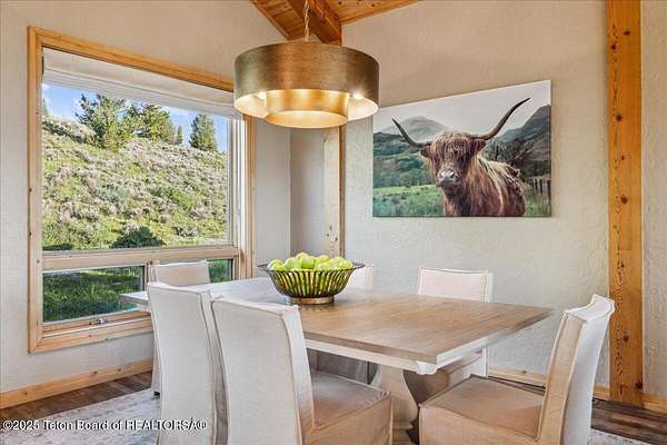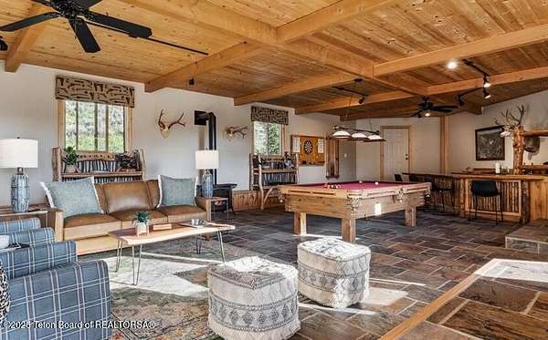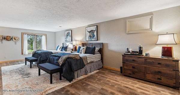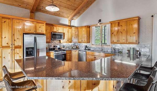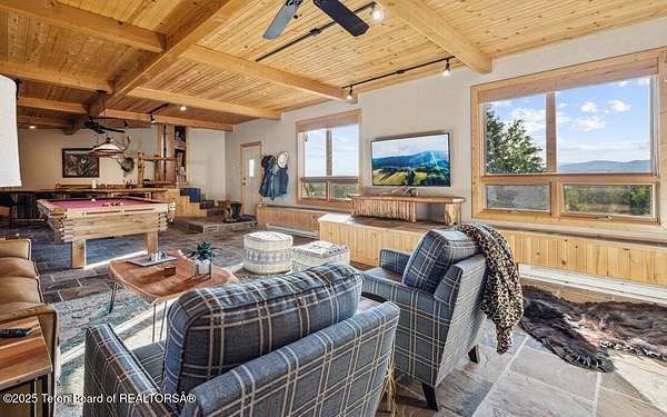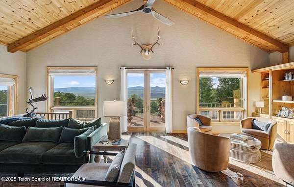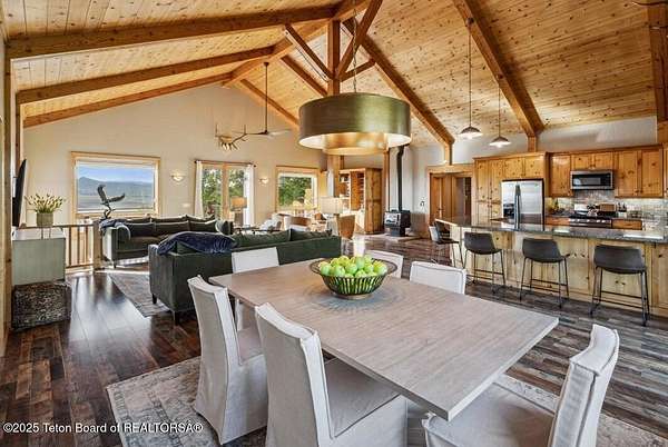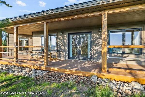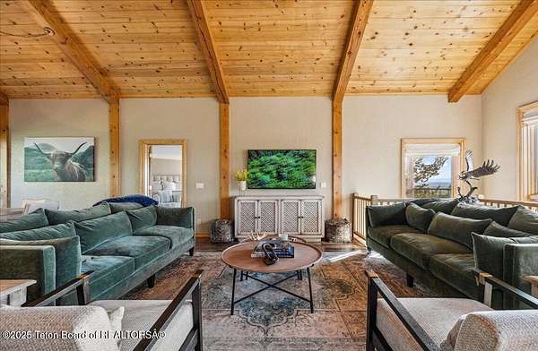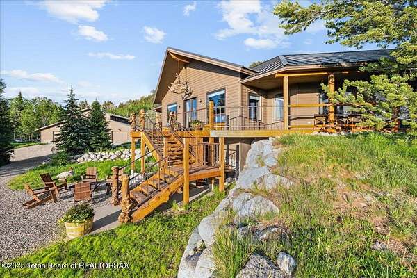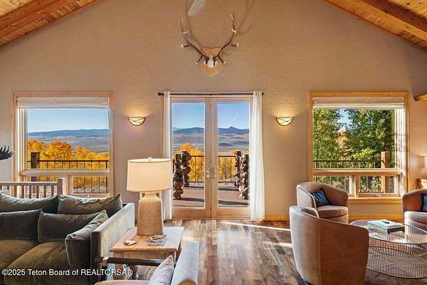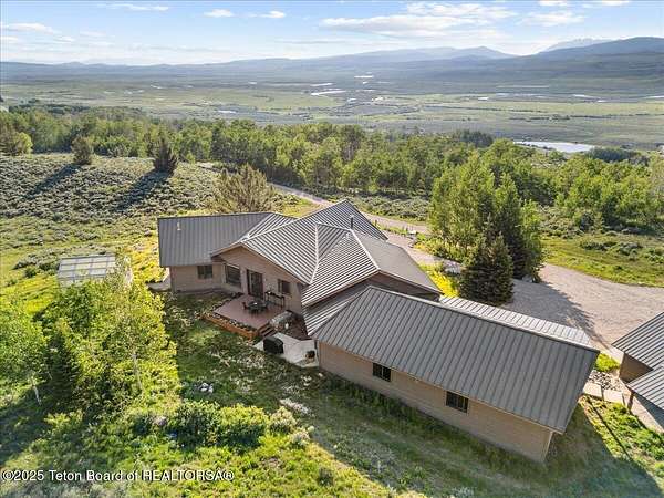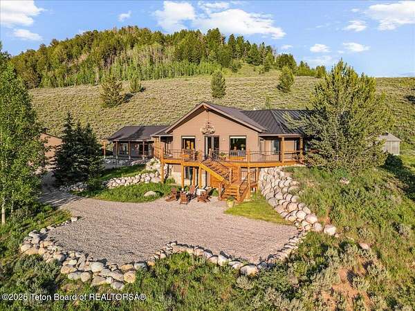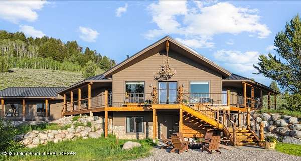 Luxurious mountain retreat offered fully furnished, in the Upper Green River valley, 25 miles from Pinedale, 75 miles from Jackson Hole, and minutes from world class fishing on the Green River. This special property sits at the end of a quiet road atop a scenic hillside in a small neighborhood which is surrounded by Forest Service lands. The extraordinary 4-bedroom, 3-bathroom mountain retreat offers 4,645 square feet of meticulously crafted living space, blending modern luxury with the untamed beauty of the Wyoming mountains. The heart of this home is a grand, open-concept great room that effortlessly flows into a gourmet kitchen, a cozy bar area, and a large dining space, creating the perfect setting for memorable gatherings with family and friends. The primary bedroom is conveniently located on the main level with the great room and kitchen. The wraparound porches and decks invite you to step outside, take in the dramatic views, and immerse yourself in the pristine natural surroundings. The lower level features a private guest suite, ideal for adult children or grandkids, with its own living area giving everyone room to relax in their own space. For entertainment, the expansive recreation room shines with a buffalo nickel inlaid billiard table and a dart board, ensuring hours of enjoyment for family and guests. A large built-in sauna adds a luxurious touch, perfect for unwinding after a day of adventure. The 12x16 heated and ventilated greenhouse is a gardener's dream, offering year-round opportunities to cultivate your green thumb. For those with a passion for adventure, the expansive 2,400-square-foot detached four-stall garage provides ample storage for on-road and off-road vehicles. Above the garage is a 960-square-foot unfinished second floor, ready to be transformed into additional living space. A 468-square-foot loafing shed adds further utility to this 11.77-acre estate. Recently and elegantly furnished, this home is move-in ready, with the added convenience of a plowable road and driveway for year-round access. Recreation abounds in this area, with the Green River minutes away and renowned for its miles of world-class trout fishing. Nearby Green River Lakes, New Fork Lake and mountain streams offer additional fishing opportunities. The surrounding Forest Service lands are a hunter's paradise, teeming with deer, elk, antelope, moose, and bighorn sheep. The Upper Green River area, known for its uncrowded trails and stunning scenery, is a favorite for snow machine adventures, and miles of groomed trails can be accessed directly from this property. This exceptional property is designed for those who crave both indoor elegance and outdoor exploration.