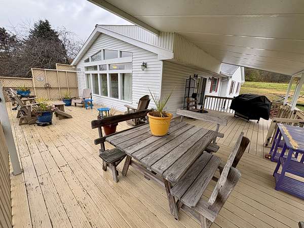 The Victorian-style home includes 3 bedrooms and 2 baths, blending timeless character with modern comforts. Oversized decks and a farmhouse-style kitchen enhance its inviting country charm.