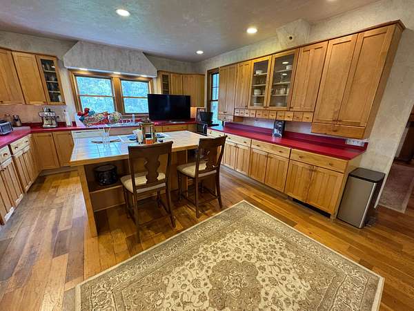 The main residence offers 3 bedrooms and 3 baths, including a welcoming in-law suite ideal for extended family or guests. Expansive decks provide excellent entertaining space, while a cozy wood burner and a bright sunroom create inviting areas for relaxation or hobbies. The home is also handicap accessible and includes an elevator lift for convenience.