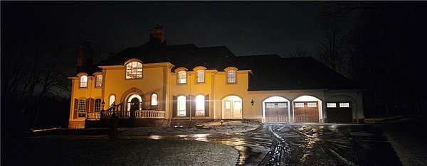 MAGNIFICENT CUSTOM ESTATE | PREMIER 6.06-ACRE LOT | PRIVATE CUL-DE-SAC | PRIME MENDON LOCATION NEAR PITTSFORD BORDER Sold As-Is, this Grand Estate offers endless possibilities-an exceptional 6,172 sq. ft. custom-built home on a private 6.06-acre lot at the end of a quiet cul-de-sac, minutes from the Pittsford border and less than five minutes from Victor Mall and exclusive shopping. A circular driveway leads to a striking entrance and spacious three-car garage, offering curb appeal and ample parking. The estate features twelve generously sized rooms, including six bedrooms and six bathrooms, with each bedroom offering large walk-in closets, and seven gas fireplaces adding warmth and character. The luxurious primary suite includes two fireplaces, spa-like suite with glass shower, and soaking tub with backyard views. A refined library includes a hidden passage to the basement. A showstopping two-story foyer sets the tone for the home's scale. Dual staircases at opposite ends provide access to the upper level and basement, enhancing functionality. Large windows and arched doorways flood the interior with light. The spacious kitchen features large counter space, perfect for cooking or entertaining guests, and accommodates daily living and gatherings, while the multi-level stone paver patio overlooks the private grounds. Timeless architecture, expansive layout, and unmatched setting make this a rare opportunity. Partially finished basement offers potential for a home theater, gym, wine cellar, or guest suite. Updates include two new furnaces, two new electrical panels (200 amps each), asphalt roof (8 years old), hot water tank (2 years old), and air conditioning (6 years old). While the Home requires some repairs, it has great potential for the home of your dreams and instant equity.