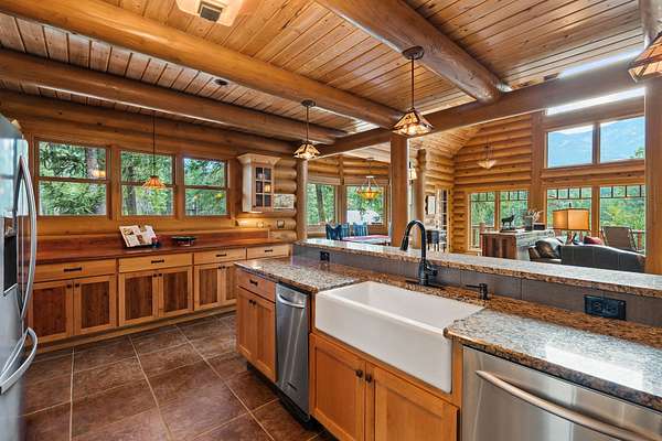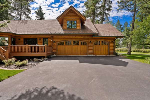 Mountain lodge living in Big Sky Country! Discover the perfect blend of privacy, comfort, & convenience in this stunning 3BD/4BA, 4,299 SF log home nestled on 2.685 acres in a quiet, park-like setting. Surrounded by mature trees & beautifully landscaped grounds, the property offers a serene wooded lot w/ inviting outdoor spaces. Enjoy Montana evenings around the outdoor fire pit, or unwind in the fenced side yard, ideal for pets or gardening. Elevated, unobstructed views of the Swan Mountain Range create a breathtaking backdrop, with a circular driveway leading to the home's welcoming entrance. Inside, expansive living spaces and thoughtful design capture both elegance & warmth. Perfectly situated between Columbia Falls, Kalispell, & Bigfork, this location provides quick access to everyday amenities. Glacier National Park is just a 30-minute drive away, & Whitefish Mountain Resort, Flathead Lake, & the Bob Marshall Wilderness are within easy reach for endless year-round recreation.