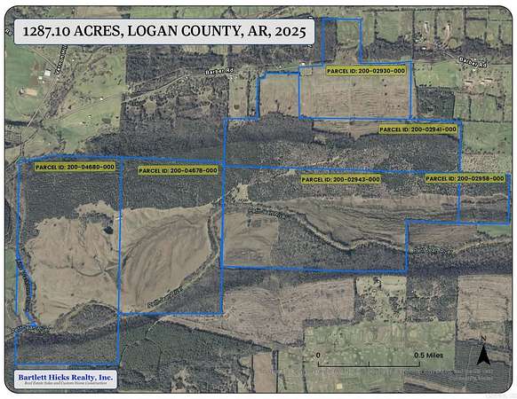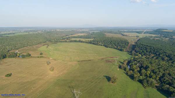 This property is a rare find, spanning a substantial 1287 acres. I have thoroughly explored the land, and it truly is a hunter's paradise, featuring open fields along the Petit Jean River and backing up against the mountains. Currently, all the fields have been cut for hay. During our last visit, I noticed that the fields had just been hayed, attracting all kinds of wildlife. Quail would be a great addition to this property; in fact, there are already a few present, along with deer. The wooded areas also invite turkeys. Accessing the roads leading to, through, and from the property is easy. Additionally, there are several sheds on the property that are used for storing tractors and hay--just minutes from conveniences in Booneville. If you want to build your dream lodge, the site is just a short distance from Fort Smith's shopping area. Don't miss out on this opportunity, and as the country and western song says, "Buy Dirt." Last count on large round bales of hay was 835+
