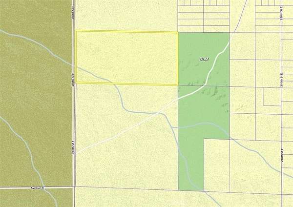 Est $859/mo80.93 acre lot with 1337 feet of frontage on 200th St E north of Ave A8. Zoned A22 for agriculture, animals, and a home. Adjacent 80 acres to the north and 162 to the south also available. APN 3318-001-001.
