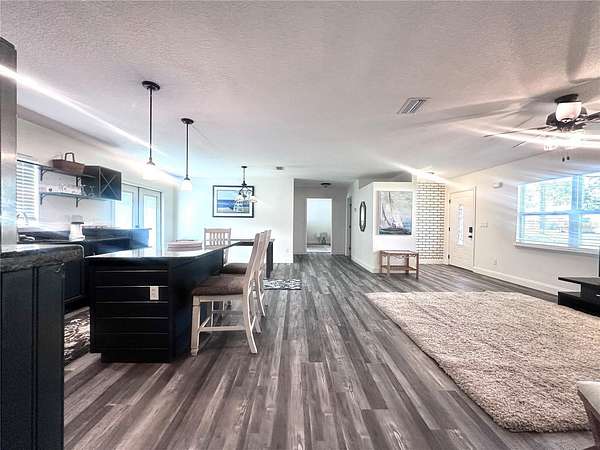 Set on approximately 2.5 acres in Edgewater, this well-maintained 3-bedroom, 3-bath residence offers exceptional space, privacy, and flexibility. The home features a bright, open living and dining layout with durable flooring throughout, along with a functional kitchen offering ample cabinetry, stainless steel appliances, and generous counter space. In addition to the three bedrooms, an extra room provides ideal flexibility for a home office, guest room, or flex space. The primary suite includes a large walk-in closet and a spacious shower, while all bathrooms have been tastefully updated with modern vanities, tiled showers, and clean finishes. Outdoors, the expansive cleared acreage provides abundant room for outdoor living, recreation, boat or RV storage, and future improvements, complemented by existing outbuildings for added utility. Located near Mosquito Lagoon--part of the Indian River Lagoon system--this property is ideal for boating, fishing, and outdoor enthusiasts, while remaining conveniently close to New Smyrna Beach, Port Canaveral, major roadways, and approximately one hour from Orlando International Airport.