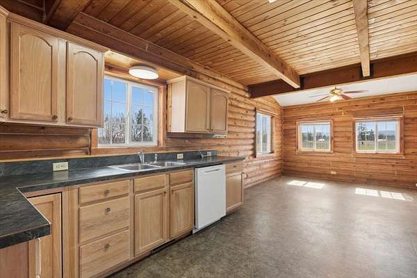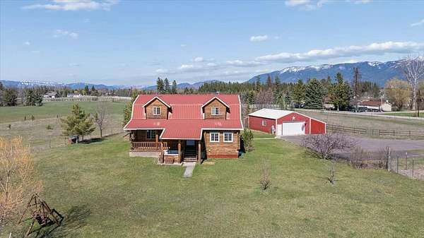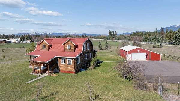 Your future hobby farm starts here! Known for growing Christmas trees in the past, this 10 acre mini-farm with NO COVENANTS is a blank slate! With good soil, level ground, excellent sun exposure and fencing and cross-fencing in place, this property is ready for your vision. Bring your animals and your green thumb! Centered in the middle of the property is a 4-bedroom, 2-bath Montana-style log home that enjoys expansive 360-degree mountain views, highlighted by the peaks of Glacier National Park. Designed with an open layout, the home offers cozy log charm, plenty of windows to showcase the views, and spacious covered decks on two sides. One of the property's key highlights is the 24x36 shop, featuring a full bathroom and two attached enclosed lean-tos. There is also a paved driveway, a large fenced in garden area, and a barn for your livestock. Located out in the country with great access on paved roads, yet just 10 minutes from downtown Kalispell! Must see!