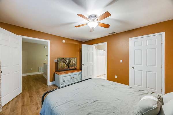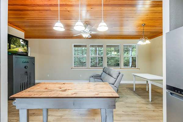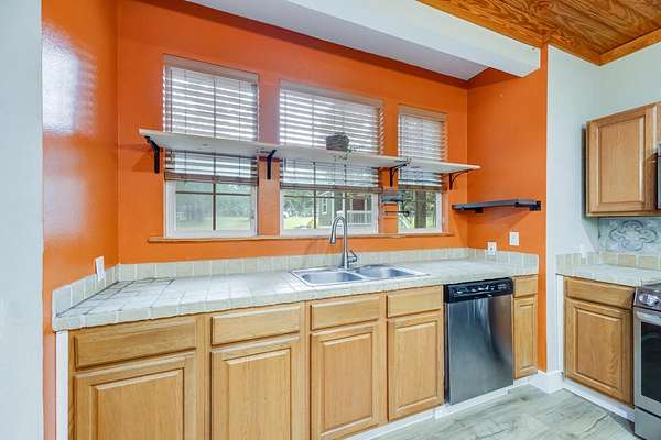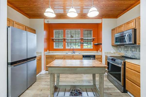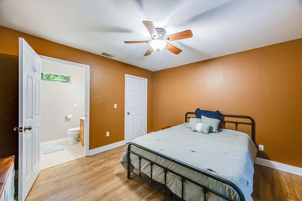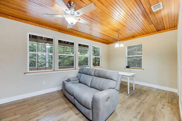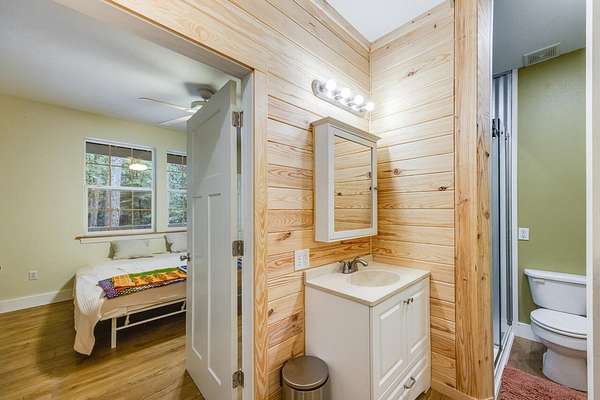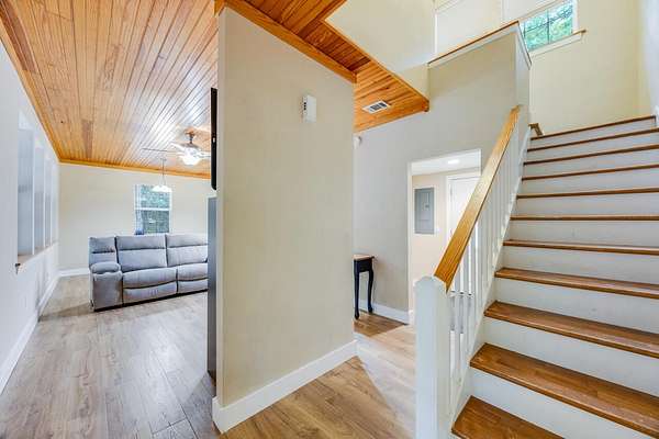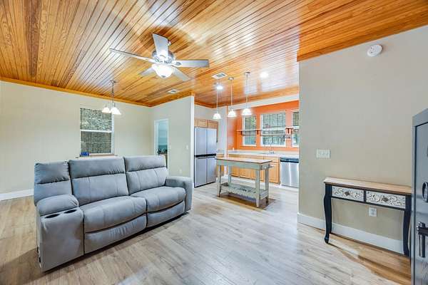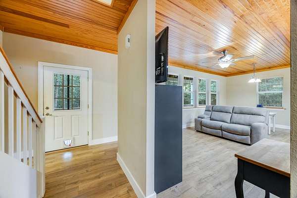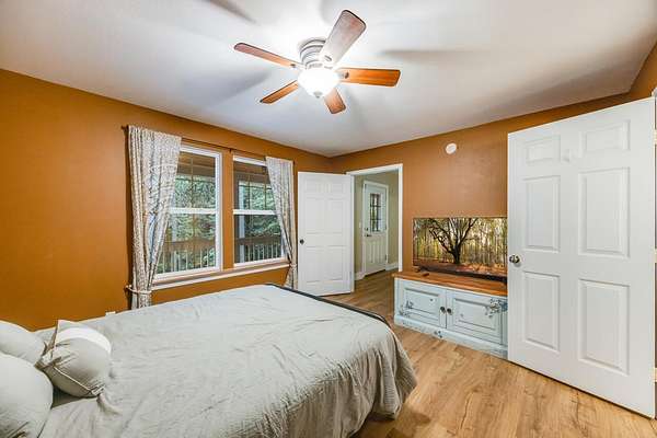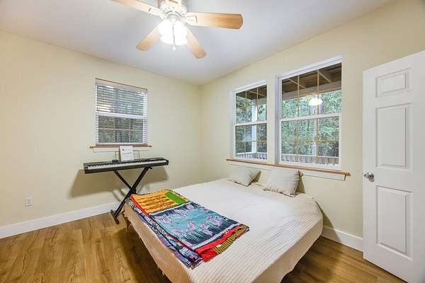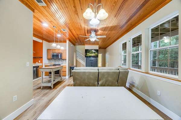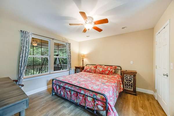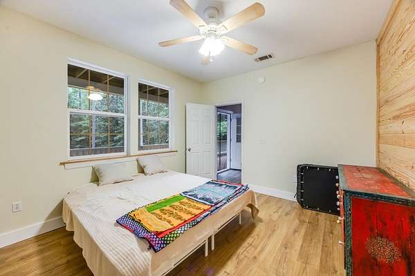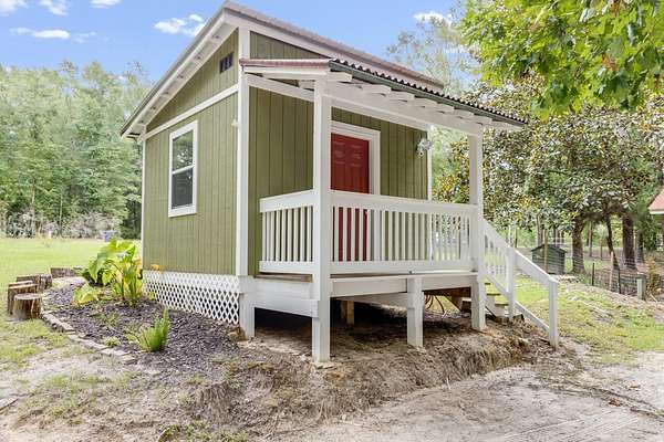 If it's seclusion you're looking for, this is the home for you! Nestled on 2 peaceful acres with a beautiful creek, this 3-bedroom, 3.5-bath home offers country living at its best-just 5 miles from grocery stores, restaurants, and all the conveniences of town, 30 miles to the sugar-white sand beaches of South Walton and 30A, and convenient to Eglin AFB. Every bedroom has its own full bathroom, with an additional guest half bath on the main level. Downstairs you'll find a spacious bedroom with its own full bath and laundry area. Upstairs are two private en-suites, each with a large walk-in closet. The kitchen flows seamlessly into the family and dining areas, complete with stainless steel appliances, a brand-new Wi-Fi-enabled stove with built-in air fryer, and an oversized dining space perfect for entertaining. Step outside to enjoy two extra-large porches overlooking a canopy of trees and your private backyard, ideal for morning coffee, family gatherings, or evenings watching wildlife like deer and turkeys. The oversized 2-car garage offers abundant storage, while the additional outbuilding, with existing water hookups from its prior use as a laundry room, provides endless potential as a she-shed, workshop, hobby studio, or guest retreat. The crawl space is fully encapsulated with a dehumidifier and thermostat monitor, while the attic provides even more storage. This property could also serve as a wonderful second home or investment property. With its private setting, spacious layout, and proximity to beaches and town, it has strong potential as a vacation retreat or rental for those seeking a peaceful getaway. Whether you're looking for a full-time residence, a weekend retreat, or a property with short-term rental potential, this home offers flexibility to fit your goals. Bring your imagination! There's already space for chickens, room for a garden, and plenty of land to make it your own. Wonderful neighbors and a serene setting make this a true hidden gem. Come see your new home today!