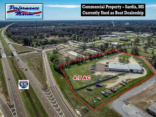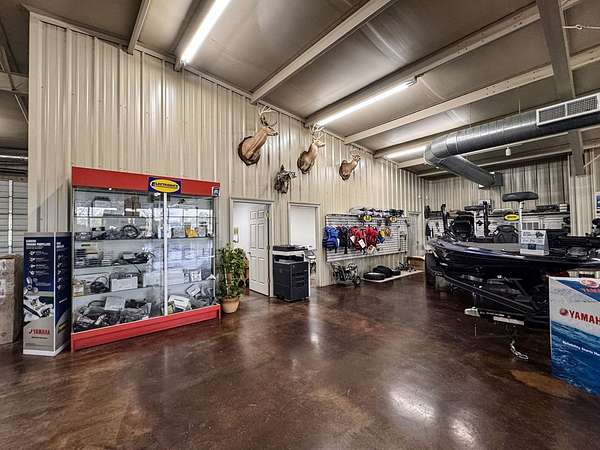 Located just off I-55, this property has been home to the well respected boat dealer, Performance Marine, for the last 18 years. With high-visibility & quick access from the interstate, there's unlimited commercial potential. The building has 7,000 sq. ft. of showroom & office space, which are both climate controlled. The showroom has highly versatile slatwall panels for a polished display of products. There are designated office spaces, 2 bathrooms, a kitchen, storage, & a parts center all in this building. The adjoining 4,200 sq. ft. shop has 6 roll-up doors & an overhead hoist to unload open trailers. Both areas have LED lighting. The shop is heated & also has a bathroom. The perimeter of the property is entirely fenced & has LED lights. With over 9,000 sq. ft. of asphalt, there's plenty or room for parking with ample acreage to expand. The power is on the same line as the nursing home, so quick repair is assured in an outage. Unlimited business opportunities in this prime location!