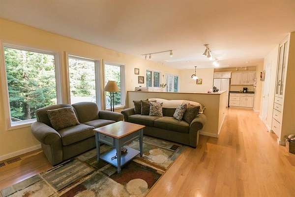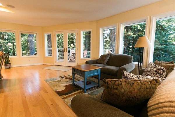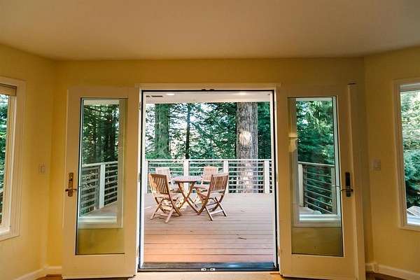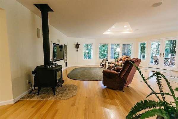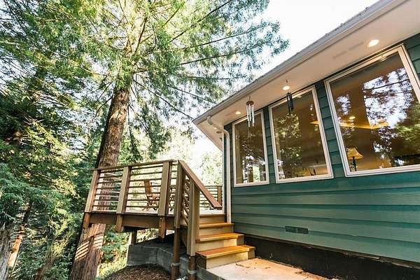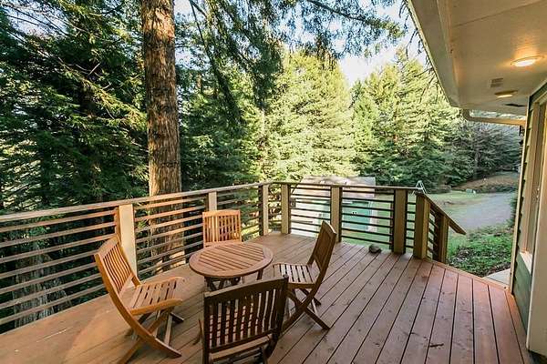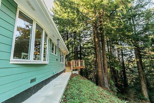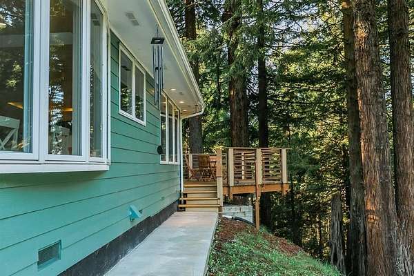 Est $3,844/moNestled in the heart of the redwoods on over 2 acres at the end of a private road (for huge privacy/security). Surrounded by trees, the 3 Bdrm/3.5 Bth home is open and airy, overlooking your own redwood forest. The large shop (that is completely finished with loft area, bthrm, kitchen, wlk-in closet and ductless heat pump. and yes, it could easily be lived in). This shop, or Grandmother's quarters, is 1,200 sq ft and could accommodate a wealth of hobbies and was once used as a separate living area.