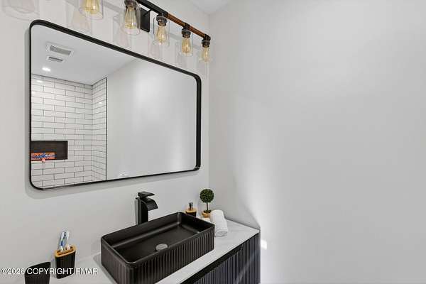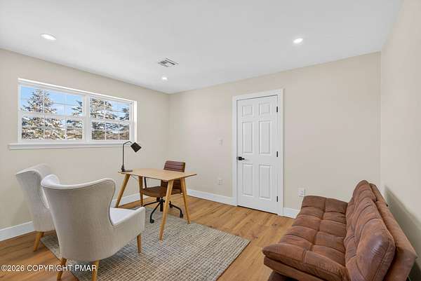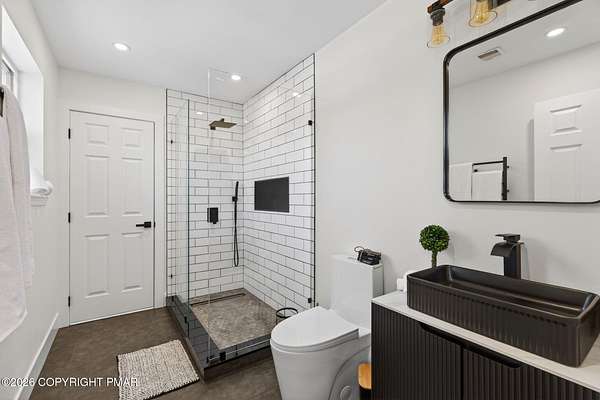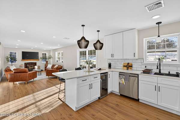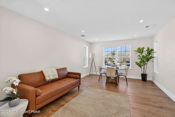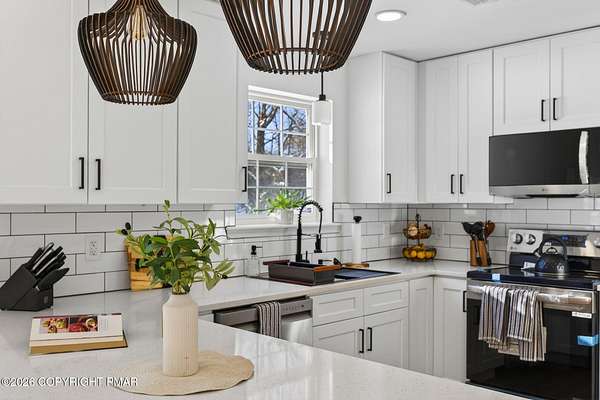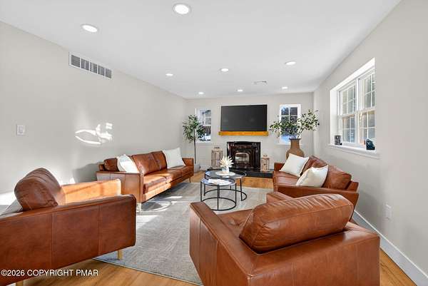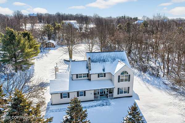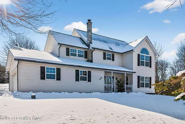 Experience The Ultimate Turnkey Escape On This Private 2-Acre Lot In Upscale Valley View Estates! This meticulously remodeled home offers a seamless blend of modern design and rural serenity. The heart of the home is a stunning open-concept kitchen featuring premium quartz countertops, crisp white cabinetry, designer pendant lighting, and new stainless steel appliances. The high-end finishes continue into the fully renovated bathrooms, boasting custom subway tile, sleek matte black fixtures, and luxurious radiant heated floors for ultimate comfort. Natural light pours over the new flooring throughout, highlighting the spacious living areas and modern recessed lighting. Outside, an oversized rear deck provides the perfect space for entertaining while taking in the surrounding nature. Buy with total confidence knowing the entire home has been upgraded including a new roof with a 50-year material and 10-year labor warranty, & a new high-efficiency furnace with a 10-year warranty. Pellet stove and central AC for year round comfort. Walkup-attic, 2-car garage and bonus shed for tons of storage. Located just minutes from Hickory Run State Park, Big Boulder and Jack Frost ski areas, Lake Harmony, and Jim Thorpe, with easy access to I-80. This is a rare opportunity to own a completely modernized estate on acreage where the work is done, the warranties are in place, and the lifestyle is ready to be enjoyed. Nothing Else Like This - Call For Your Private Tour Today!