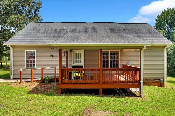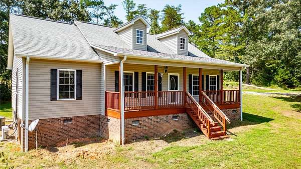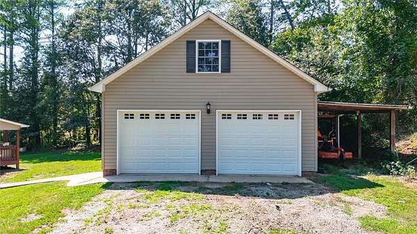 PRICE IMPROVEMENT and seller willing to provide an allowance for updating.... Set on 5.3 private acres in Liberty (Anderson County), this inviting 3-bedroom, 2-bath home welcomes you with cathedral ceilings in the living room and a cozy fireplace-perfect for those chilly Upstate nights. The kitchen offers plenty of cabinet and drawer space, an island, and an eat-in area. A split floor plan provides privacy, with the primary suite on the main level featuring tray ceilings, while two additional bedrooms share a full bath. Outdoors in the main home, you'll love the rocking chair front porch and large back deck. you can relax on the rocking chair front porch or entertain on the covered back deck. The home has been updated with fresh paint throughout and new LVP flooring in every room except the kitchen. A single-story style carriage house adds versatility to the property with 1 bedroom, 1.5 baths, a full kitchen, living room with fireplace vent stubbed for a wood-burning stove, and a mudroom leading to a 3-stable barn. Whether used for guests, rental income, or multi-generational living, this space is a valuable addition-complete with its own rocking chair porch. Additional features include a large detached 2-car garage with a bonus room above (equipped with a split unit), a separate 1-car detached garage with power, and three more storage buildings, two with power. Enjoy the peace and privacy of country living while still having easy access to Clemson, Anderson, and Greenville.