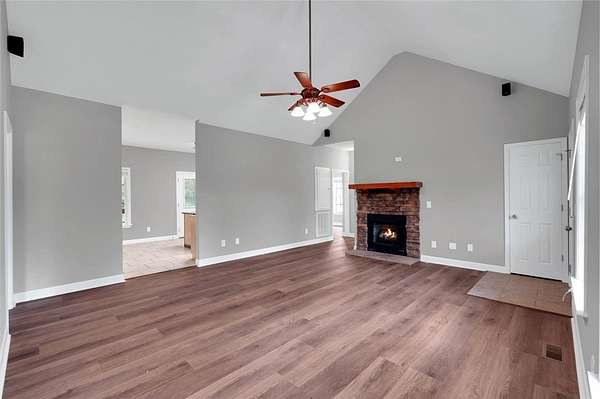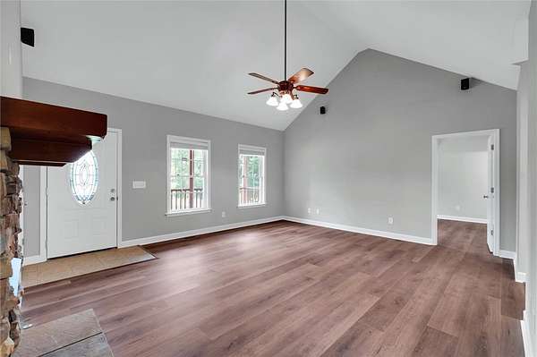 - Cathedral Ceilings, Ceiling Fans, Fireplace, High Ceilings, In Law Floorplan, Main Level Primary, Second Kitchen, Shower Only, Tray Ceilings, Vaulted Ceilings, Walk In Closets