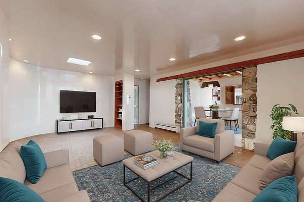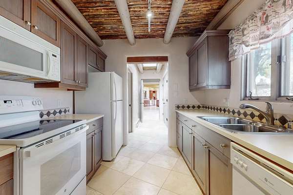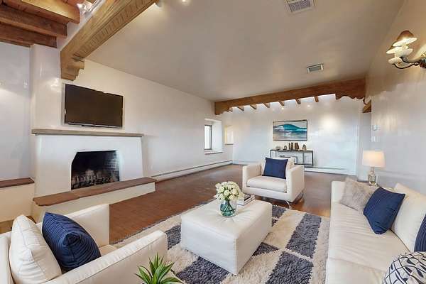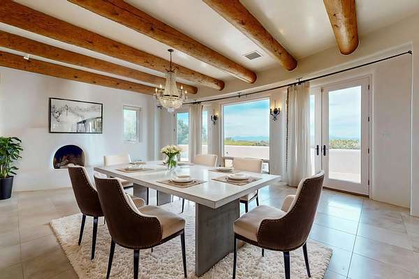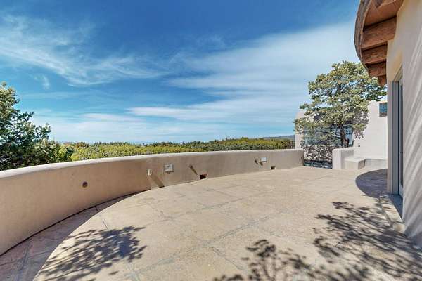 Approximately 5801 square foot main residence with an attached 1068 square foot guest house and 594 square foot studio, located on one of the best view sites on prestigious Circle Drive. Long considered to be one of the best areas in Santa Fe because of its marvelous views to the city, northern badlands, western Jemez Mountain range and the Sangre de Cristos, as well as its proximity to The Plaza and The Santa Fe Opera. Resting on 1.93 acres with a private security gate, this traditional Pueblo masterpiece is partial adobe, beautiful latillas, extensive portals, 9 fireplaces, 5 bedrooms, 5 1/2 baths and a very large formal dining room with beautiful light and views. It also features 4 garages, cherry wood cabinets in the kitchen & stainless steel appliances. This home was recently appraised for over $3.2 million. The home will require some work to bring it up to its former glory. It is being offered in its current condition at a price of $2.7M. Photos are virtually staged.