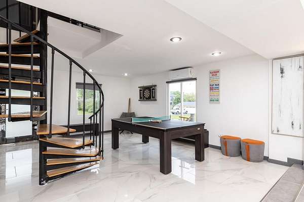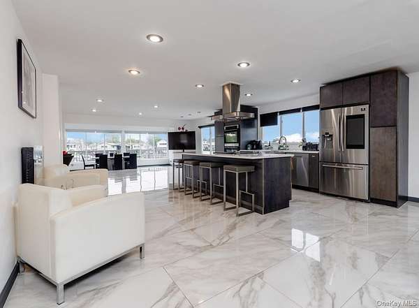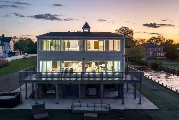 Welcome to 200 Clocks, a rare waterfront opportunity offering 200 feet of bulkhead and boat slips on three sides, just minutes from Breezy Point Park and the open bay. Set on 1.8 acres, this parcel includes a stunning 3,710 sq ft modern luxury home and approved subdivision plans for two lots-ready to be finalized at buyer's request, if desired. The 3-bedroom, 3.5-bath home was raised and completely rebuilt in 2017 and is the ideal setup for year-round living, a summer getaway, full-season rental, or high-yield short-term rental investment. Each bedroom has its own private, spa-like bathroom, and the open-concept living space features a large kitchen island, solid-surface counters, and sleek tile floors throughout. The layout is perfect for entertaining, with areas staged as a game room, living room, dining space, and home gym-all with views of the canal and surrounding water. The home is fully furnished, move-in ready, and positioned to generate income immediately. Enjoy a boater's dream lifestyle with bulkhead and dockage, access to nearby yacht clubs, and the ability to boat or drive to waterfront dining. Whether you're an end user looking for a luxurious escape or an investor exploring income potential or development options, this is an unmatched opportunity. Purchase as one expansive estate or explore options to buy Lot A (home + 1.02 acre) or Lot B (vacant .66 acre).