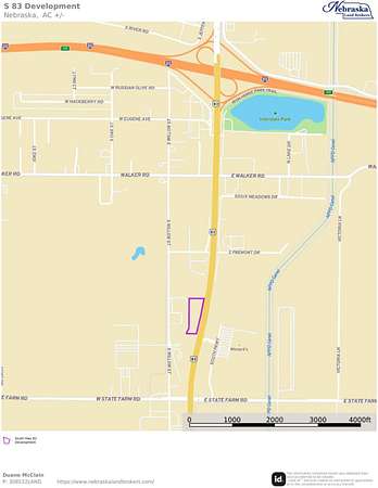 South Highway 83 Development North Platte, NE and Lincoln County are experiencing tremendous economic growth and this property can be your opportunity to be part of the growth. Located on the west side of South US Highway 83, this tract has access from College Drive which is headed west to the Community College. The tract that is outlined in the map below is approximately 6.75 acres. This tract is being offered at $3,825,000. LOCATION: Just south of North Platte, NE on US Hwy 83. The property is west of the Highway across from Menards. LEGAL DESCRIPTION: A tract to be surveyed in Lot 2 of Maline 3rd Replat, North Platte, NE ACRES: 6.75+/- acres REAL ESTATE TAXES: As a new tract the taxes are yet to be determined. ZONING: The property is currently zoned as A1 agriculture and is transitional to rezoning. UTILITIES: There is electrical power but the is currently no water and sewer utilities. FEMA: The property is not located in the flood plain OFFERED AT $3,825,000.00 PROPERTY Summary Location, location, location. This property could have a variety of options for a new owner.Full possession of the property will be given to the Buyer at closing. The Seller will retain an access easement from the approach off of College Drive to the property they are retaining. According to the NE-DOT statistics in 2024 over 2,000 vehicles passed by this location daily. The property has been declared blighted and substandard by the City of North Platte which provides the opportunity for TIF funding for a qualified and approved development. Looking for a investment into the future? This tract of land may fit the need. Special notice to the Buyer, the Seller would entertain listening to Buyers that may have interest in a larger tract of land for purchase. However, the size of the different tract would be limited to an 8+/- acre tract which consists of the subject 6.75 acres extended north to the Fremont Slough or all of the Seller's ownership of 16+/- acres. Contact Broker for asking price of these tracts.