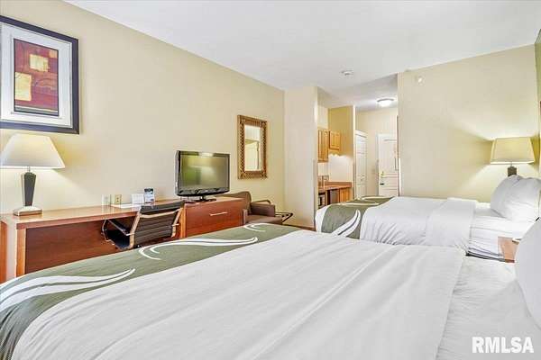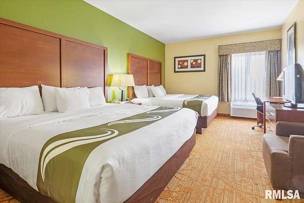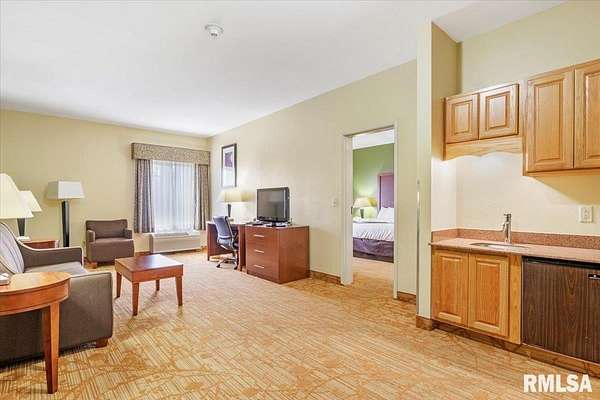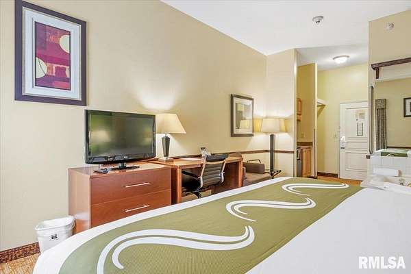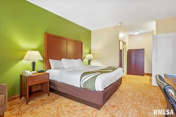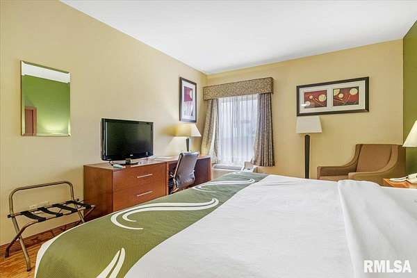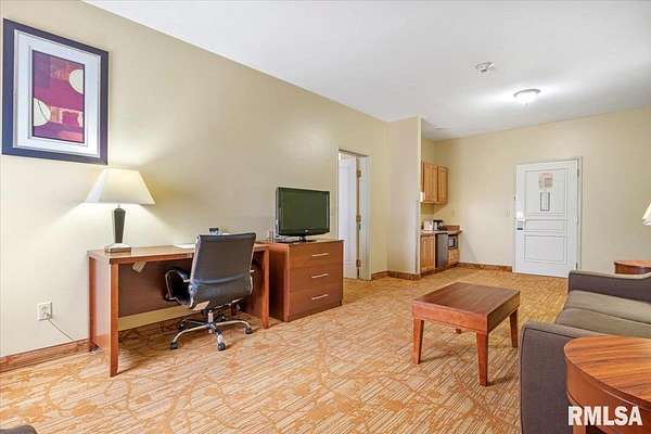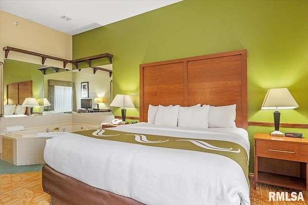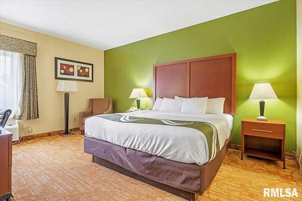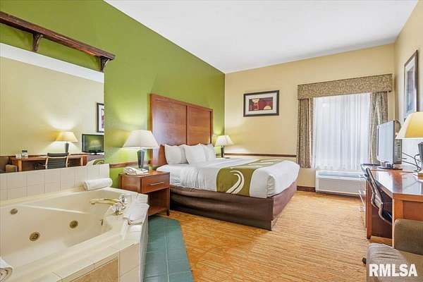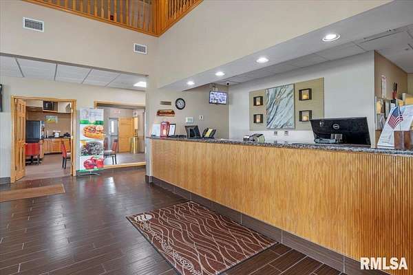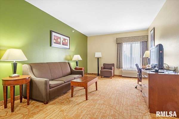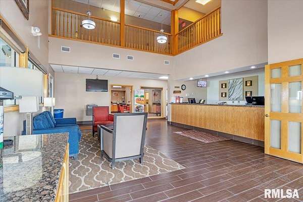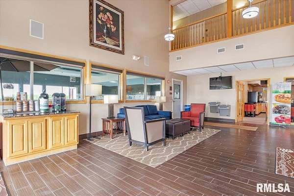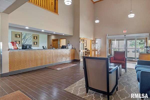 Est $20,759/moTurnkey flag hotel in Jacksonville, IL. Seen from I-72 this quality hotel is in a growing part of Central Illinois town. Strong financials and well ran operation with exceptionally large rooms, sprinkler system, new pool equipment in 2020, security cameras throughout the property exterior and interior, vending machines, metal roof, exterior painting completed in 2021, business center, guest laundry, fitness room, and a managers apartment/suite. Lender commitment required to review financials and Star reports. drone -
