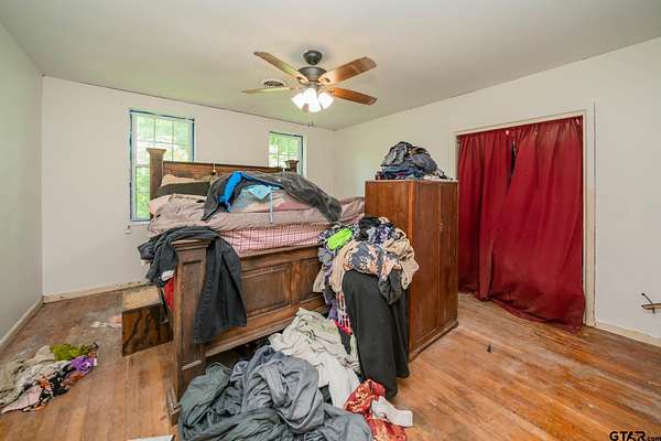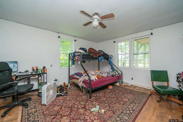 Step into a property that keeps on giving! This spacious 4-bedroom, 2-bath home has been freshly painted and sits on 11.16 fully fenced acres. Enjoy the charm of mature, producing pecan trees, a picturesque 3/4 -acre pond, cattle panel fencing in the front, and barbed wire fencing around the perimeter. Outside, you'll find a three-level barn, a 12x24 metal storage building, a storm shelter, and a three-car garage--plenty of room for your tools, toys, or animals! Inside, the home features a mix of laminate, hardwood, and tile flooring, a spacious dining room perfect for entertaining, and a generous den/family room complete with a wood-burning stove and built-in shelving. With ample space and versatile layout, you'll have room to personalize and create the finishes you've been dreaming of. This tucked-away East Texas oasis invites you to imagine, explore, and truly make it your own. Call today to schedule a showing--and let your imagination roam all 11.16 acres!