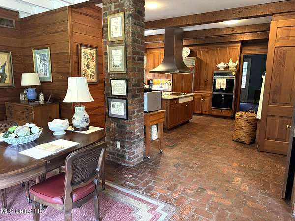 CUSTOM BUILT HOME THAT HAS BEEN A ONE TIME OWNER. You will not want to miss this opportunity to own an A. Hays Town home design built by Charles L. Moroney, that is surrounded by 2.3 +/- acres of privacy & seclusion. The feel of country living yet in the city limits. Awesome floor plan with 4 bedrooms & 4.5 baths that is suitable for everyday living & entertainment. Beautiful doors across the front & back that open to a covered porch, patio & balcony with brick floor & an exterior staircase that goes to the 2nd level. A dream kitchen for the cook that features an island, quartz countertops, electric cook top, double ovens subzero refrigerator, dishwasher & plenty of storage space & pantry. High ceilings with cypress beams & cypress walls in the kitchen & breakfast room along with some interior brick as well as brick floors. Wall to wall windows with great natural light & a view that is breathtaking. Large laundry room with an abundance of cabinets & laundry sink. Other features are large size bedrooms, wood burning fireplace, office, library, walk in closets & walk in attic access. Two HVAC units, 2 water heaters, copper gutters, outside fountain & gorgeous landscaped yard with mature trees, beautiful azeleas, etc... The drive in will not disappoint with the tree lined driveway that leads to a 2 car covered parking with a breezeway.