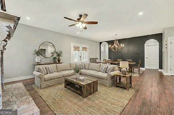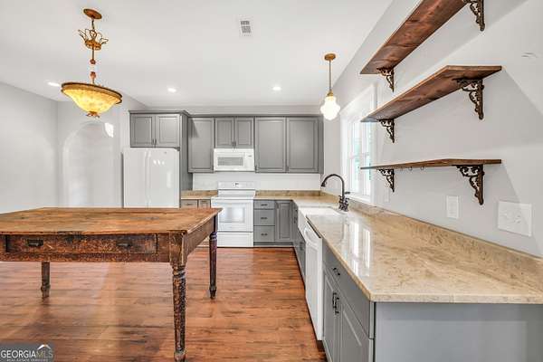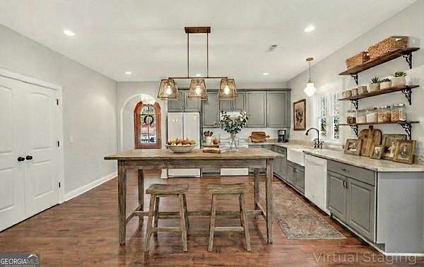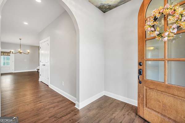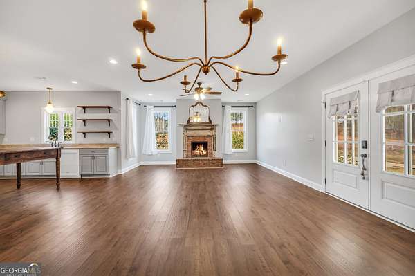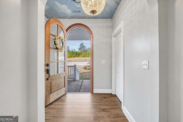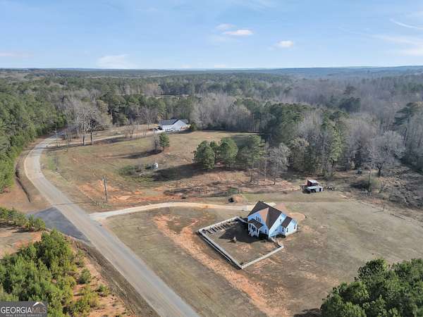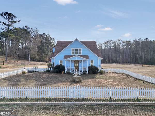 $2,000 Lender Credit when using preferred lender! Dreaming of a white picket fence? This gorgeous custom newer-built home sits on 7.762 acres offering open pasture views framed by mature woods, creating a peaceful and private setting. A charming white picket fence highlights the front yard with raised flower beds and a water fountain in the middle. You'll find that the extended driveway is perfect for gatherings and the two outbuildings are perfect for extra storage. Inside, the home offers a thoughtfully designed layout with luxury vinyl plank flooring throughout the main level. The kitchen is a true showpiece, featuring Taj Mahal quartzite countertops, white stainless steel appliances, a farmhouse sink, and ample cabinetry, along with a generously sized pantry. A welcoming foyer sets the tone with a custom ceiling mural, while the spacious laundry room adds to the homes ease of living. A small storage room is tucked beneath the staircase, adding functionality and convenience. The primary suite is located on the main level and offers private access to the outdoors. The en-suite bath is the star of the home, complete with a luxurious soaking tub, dual vanities, and a tiled walk-in shower with dual shower heads. Upstairs, two bedrooms share a Jack-and-Jill full bath, while an additional flex space offers endless possibilities as a second living area, office, or playroom and could easily be converted back into a fourth bedroom. A separate bonus room, originally designed as a bunk room, provides even more versatility. Outdoor living is equally impressive with a rocking chair front porch and a screened-in back porch, perfect for enjoying the peaceful surroundings year-round. *Some photos are virtually staged.