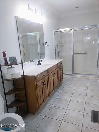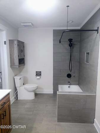 - Ceiling Fan(s), Ceramic Tile Shower, Crown Molding, High Ceilings, Kitchen Island, Open Floorplan, Pantry, Primary Downstairs, Tub Shower Combo, Walk-In Closet(s)