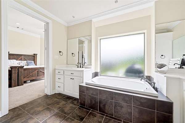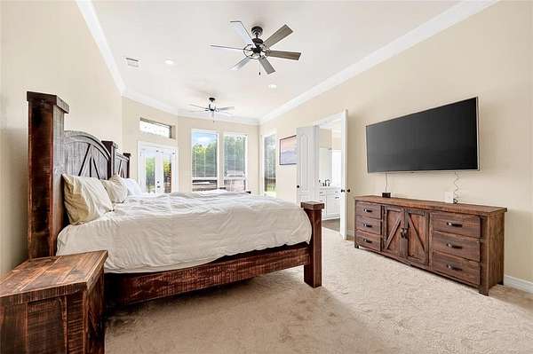 The bright and cheerful primary suite offers large windows, abundant natural light, and direct access to the pool, creating a true retreat. Three additional carpeted bedrooms feature oversized closets, providing plenty of space for family or guests.