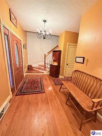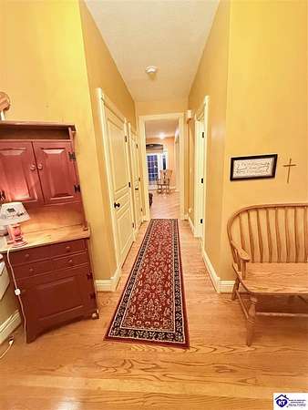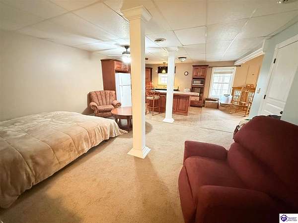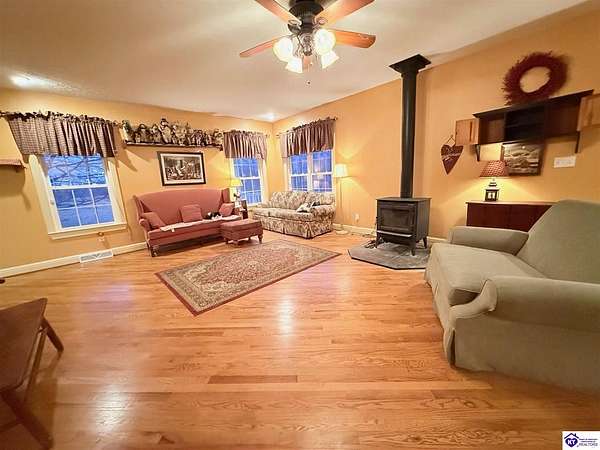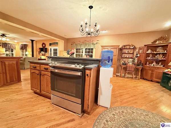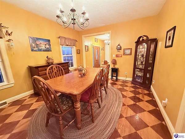 Where Sunsets Steal the Show and Country Living Shines Bright located near Holmes Bend and Green River Lake! If you've been craving space, privacy, and a home filled with heart, this incredible 27.16-acre farm delivers the perfect blend of beauty, function, and freedom! A gorgeous mix of open pasture and wooded acreage creates endless possibilities. Raise livestock, grow crops, cut hay, or simply enjoy watching deer and turkey wander near the peaceful creek you can actually hear from the house. Evenings here are something special -- golden skies, quiet surroundings, and sunsets that never disappoint. Located on a quiet dead-end road with NO restrictions, you have the privacy you want and the flexibility to truly make this property your own. Farm Features That Check the Boxes: Fenced areas ready for livestock, Auto water trough, 30'x40' barn, 2 running sheds, 1 additional small barn, Extra outbuilding behind the home for lawn equipment or storage, Peaceful dead-end road and No restrictions! Now let's talk about the home... and what a home it is! Offering approximately 4,250 square feet of living space, this stunning custom-designed, 5 bedroom, 3.5 bath residence is rich with character and thoughtful detail. The dining room showcases custom hardwood flooring and beautiful new chandelier lighting that adds warmth and elegance. Every space feels intentional, spacious, and inviting! The full, finished basement includes separate living quarters with an additional kitchen, perfect for guests, extended family, or entertaining! There's even a concrete safe room for added peace of mind. Walk right out from the basement into the backyard for seamless indoor-outdoor living. And here's a bonus buyers will love, newer appliances are included, making this home truly move-in ready! This could be your own private retreat! The newly installed heated, in-ground fiberglass pool with salt system is surrounded by a generous concrete patio and sidewalk -- giving you an extended swim season and the perfect setup for entertaining year-round. The wrap-around front and side porch invites slow mornings and relaxing nights, while the beautiful main-level deck overlooks the backyard and wooded acreage -- the perfect place to unwind! A charming orchard featuring a variety of fruit trees! Data believed true. Buyer to confirm prior to offer. NOTE: Preapproval/proof of funds required for showings.