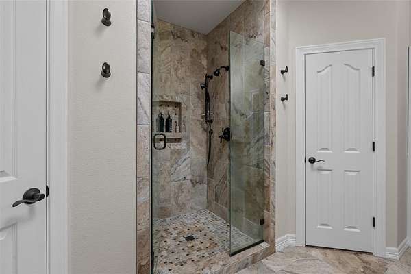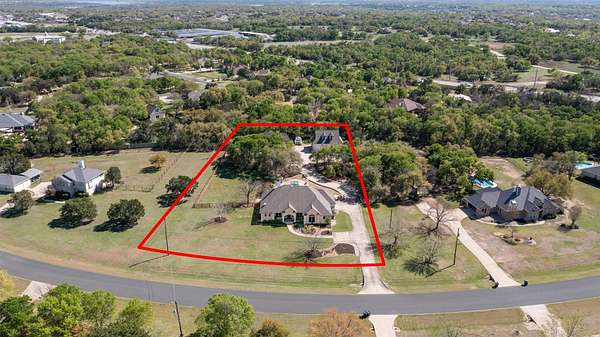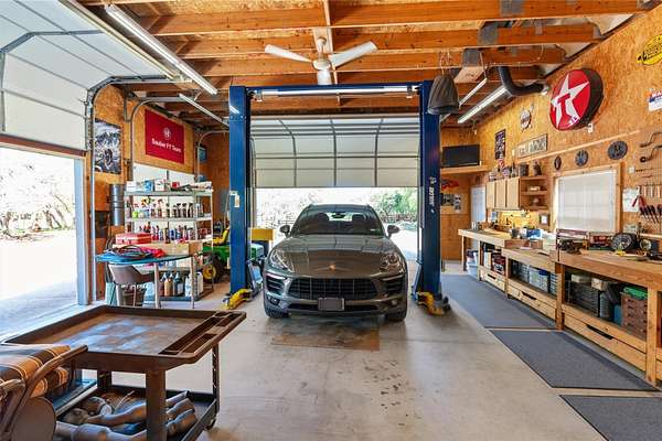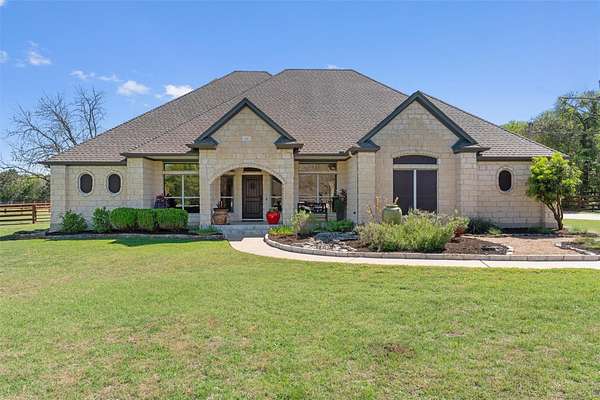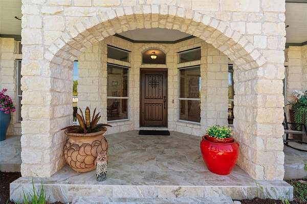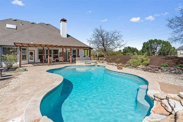 Set on a private 1.66-acre lot with NO HOA, this exceptional property offers the freedom, space, functionality, & style that are increasingly hard to find. The expansive fenced backyard is designed for both relaxation & entertaining, featuring a large covered patio & spacious pergola that create inviting gathering spaces, along with an outdoor kitchen that makes hosting effortless. The sparkling pool with a hot tub offers the perfect place to cool off, while multiple seating areas are thoughtfully placed throughout the yard. Surrounded by mature trees & offering plenty of open space to roam, play, or customize, this backyard is a true private oasis. Another standout feature of the property is the oversized detached garage & workshop with a loft & vehicle lift, offering incredible flexibility for hobbyists, car enthusiasts, extra storage, or the ultimate man cave. Step inside the home and be welcomed by an open-concept floor plan highlighted by expansive windows & high ceilings. The spacious living room features a stunning floor-to-ceiling stone fireplace & elegant double tray ceilings, seamlessly flowing into the kitchen. Here, you'll find granite countertops, a large island with bar seating, striking floor-to-ceiling dark wood cabinetry with pullout drawers, a brick backsplash, stainless steel appliances, & a pantry. A breakfast area is perfect for casual dining, while the formal dining area offers an ideal setting for special gatherings. At the front of the home, a dedicated office provides a quiet workspace. The primary suite is complete with a double tray ceiling, bay window, direct patio access, & an ensuite featuring a dual vanity, frameless glass shower, & a walk-in closet. Two additional bedrooms offer flexibility for guests, each with spacious closets & connected by a convenient Jack-&-Jill bathroom. Ideally located just a short drive to Lake Georgetown, the airport, & a wide variety of shopping, dining, & recreation, with easy access to TX-195 & I-35.